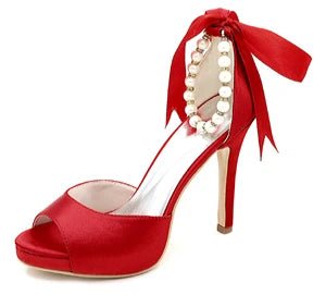 Elegant Satin Open Toe Pumps with Pearl Beads Ankle Strap