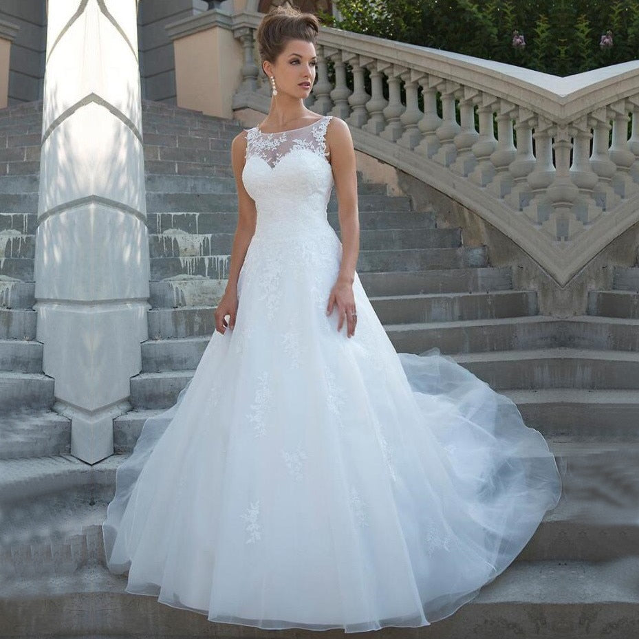 Elegant Scoop Neckline A-line Tulle Wedding Dress