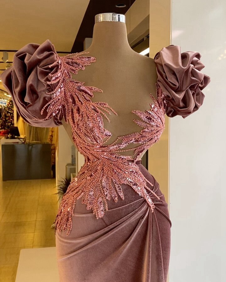Ruffles Mermaid Sequins Long Women Plus Size Pageant Prom Gowns