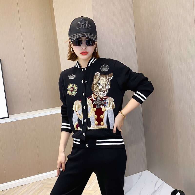Embroidery Beaded Leisure Sports Hoodie Coat +Casual Pants Two Piece Sets Women's Clothing Comfortable Activitywear knited Suit