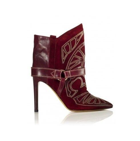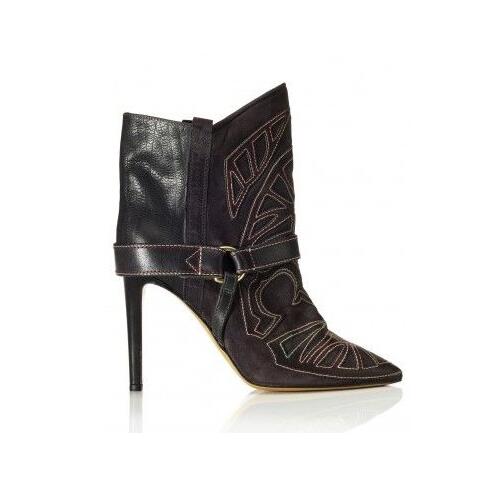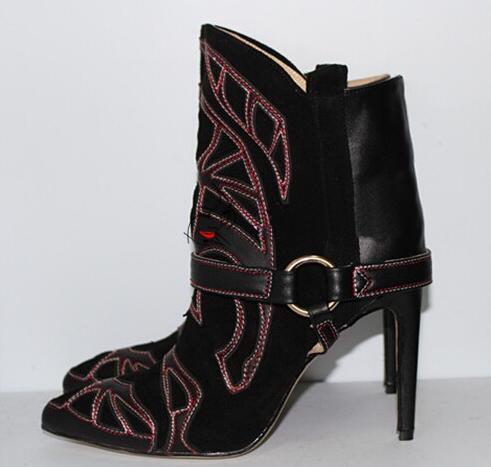 Embroidery Suede Leather Pointed Toe Ankle Boots Stiletto Strappy Lady Short Boots Fashion Lady High Heels Studded Boots Shoes