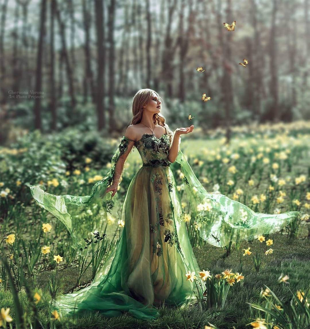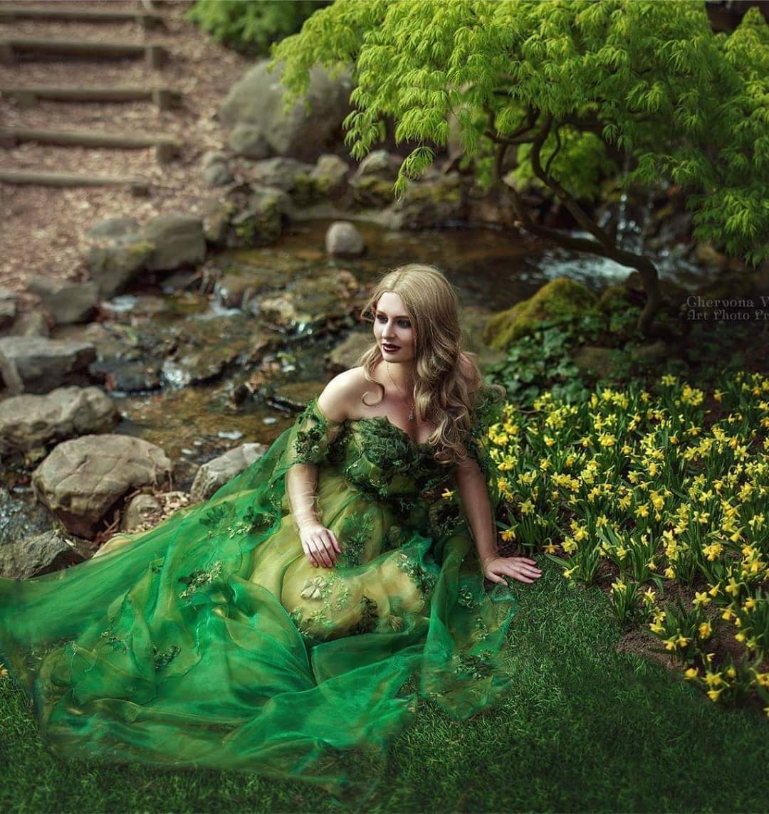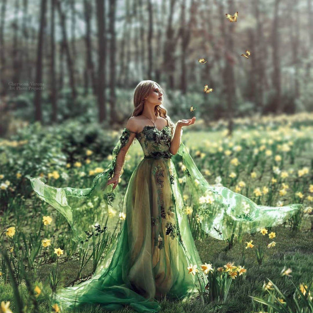 Emerald Green Dress Prom Dresses Floral Dress Women Evening Dresses Jungle Fairy Dress Plus Size Dress Woman Elegant Dresses