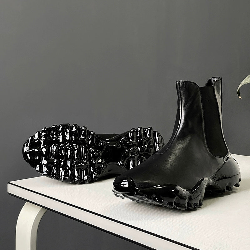Epoxy short boots melted bottom first layer cowhide Chelsea boots elastic band casual men's boots