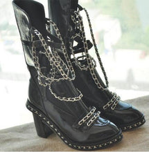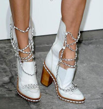 Fall Winter Ankle High Black White Motorcycle Boots Shoes Women Chained Overknee Boot Chunky Heels Big size