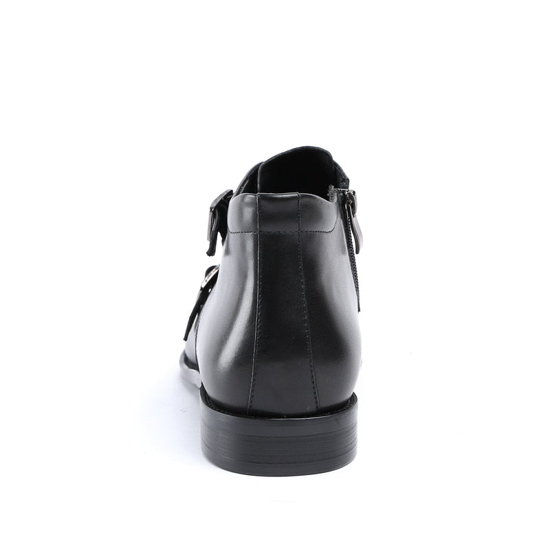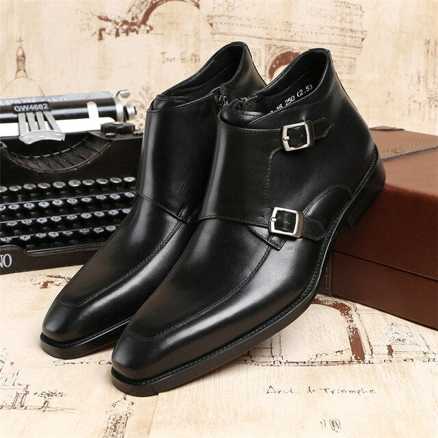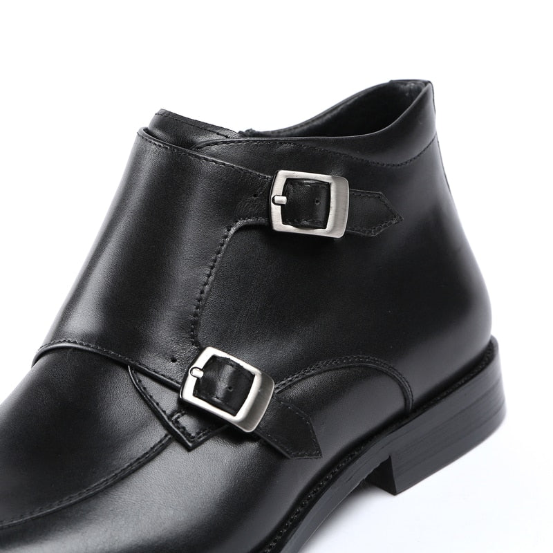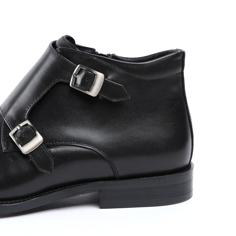 Fashion Black / Tan Double Monk Strap Ankle Boots Mens Dress Shoes Genuine Leather Boots Male Wedding Shoes
