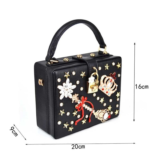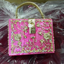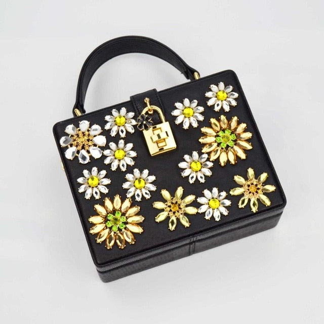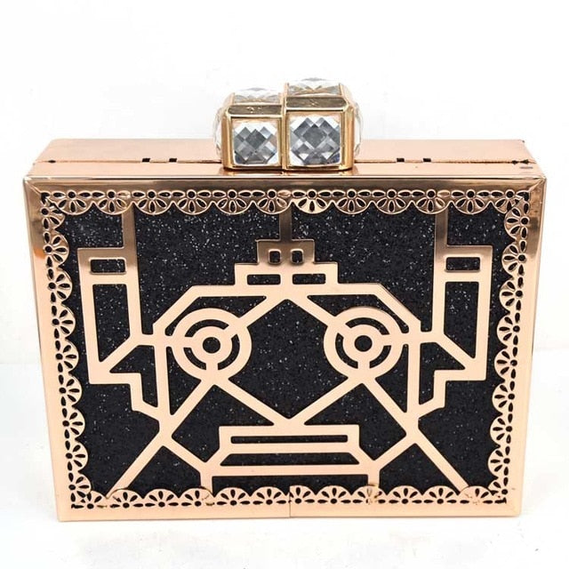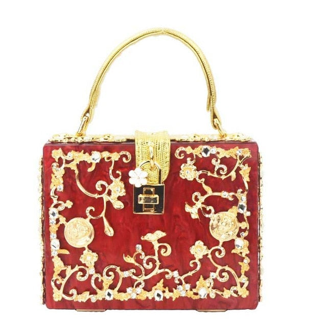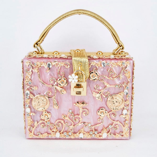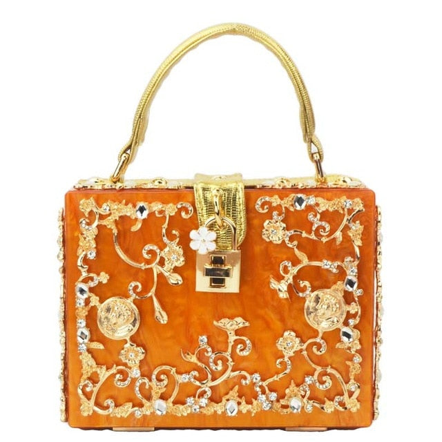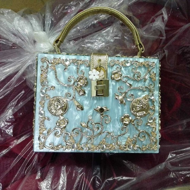 Fashion Box evening bag diamond flower Clutch Bag hollow relief Acrylic luxury handbag banquet party purse women's Shoulder bag
