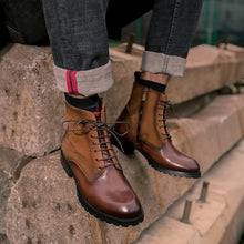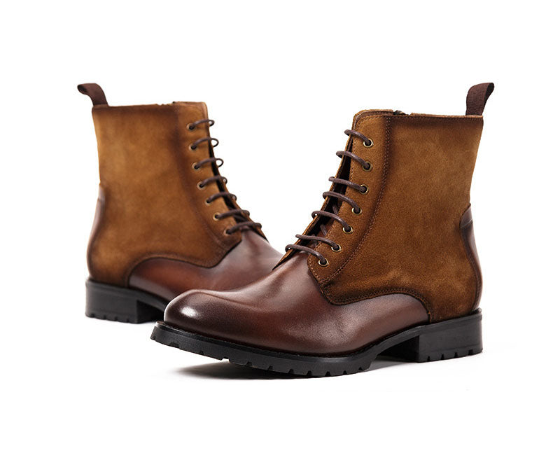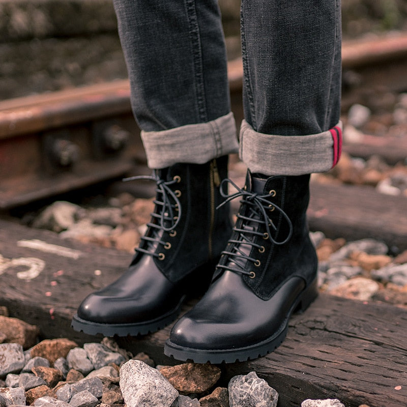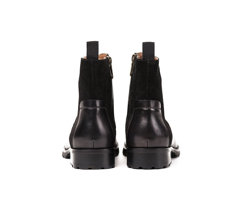 Genuine Leather Round Toe Men's Handmade Military Ankle Boots