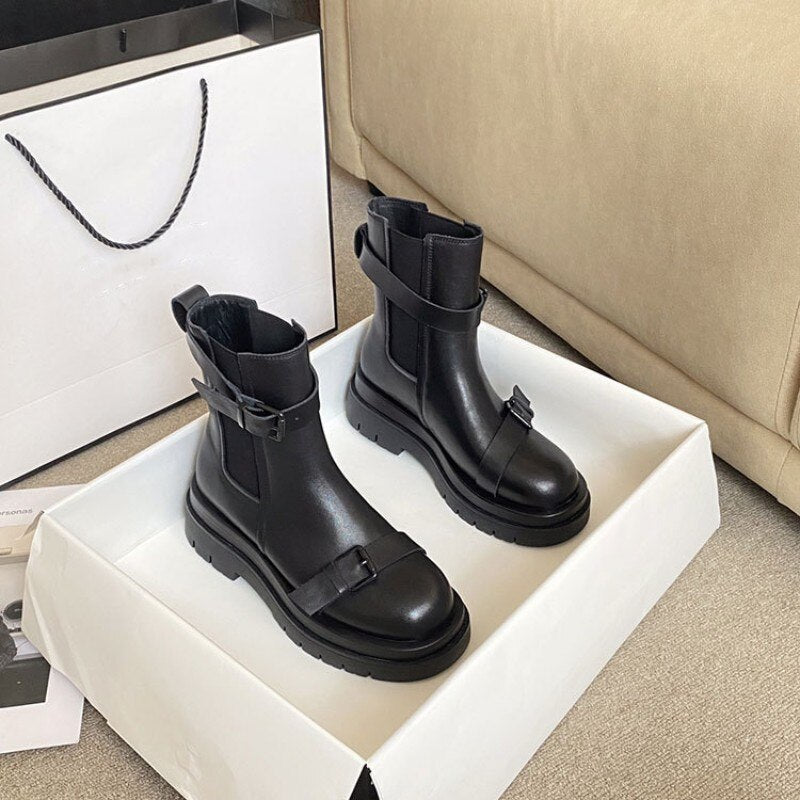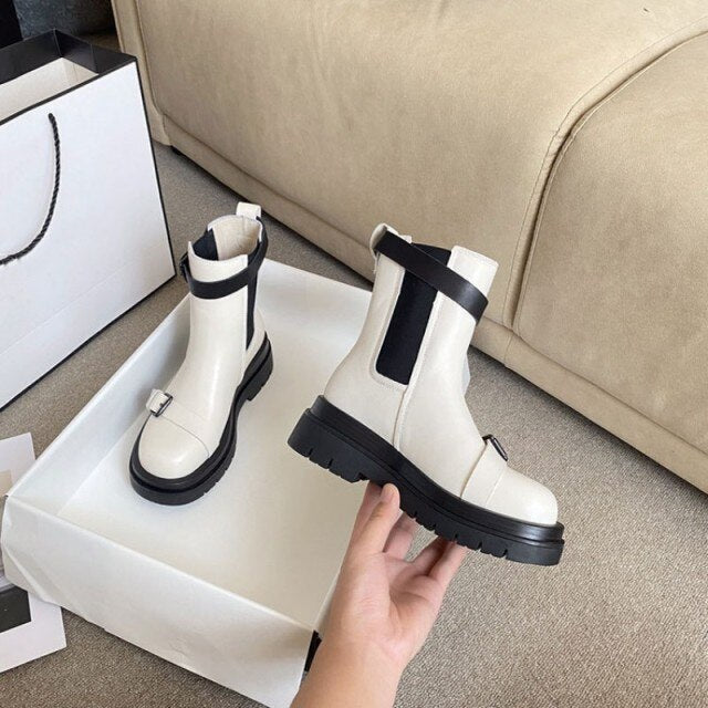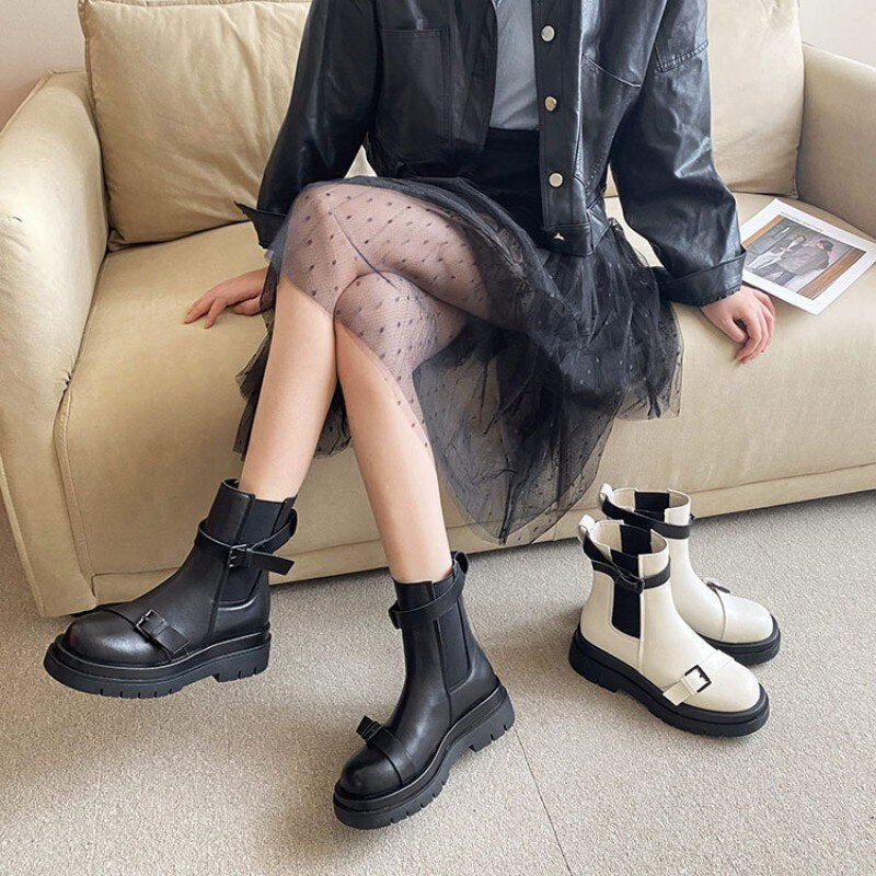 Round Toe Thick Bottom Platform Ankle Boots Female
