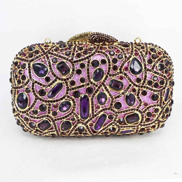 Fashion Luxury Sparkly Diamond Evening Bag Purple Crystal Clutch Bag Women Wedding Party Purse Female pochette banquet bag sc125