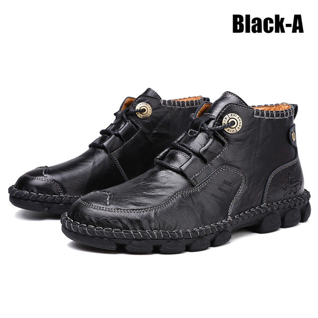 Fashion Mens PU Leather Shoes Casual Anti-Slip Vintage Boots