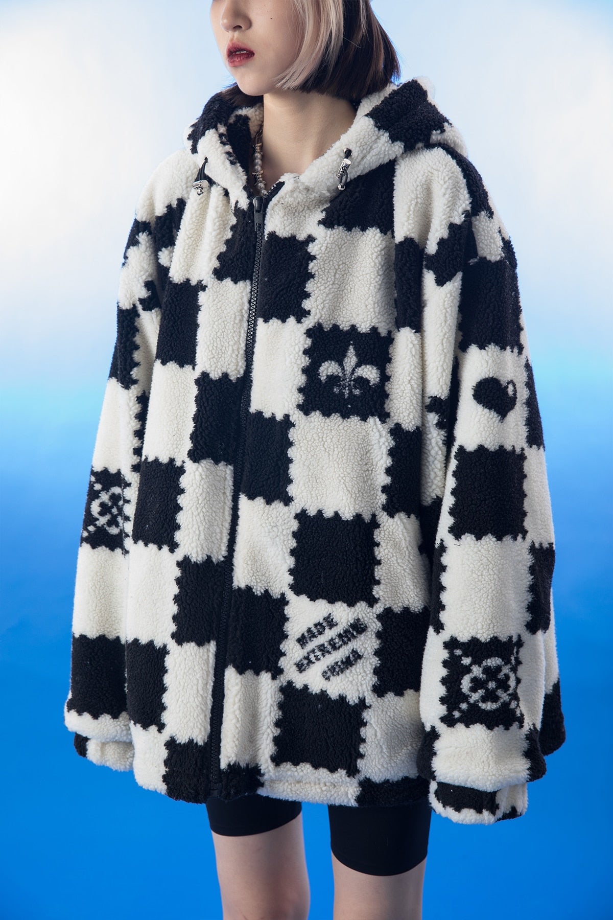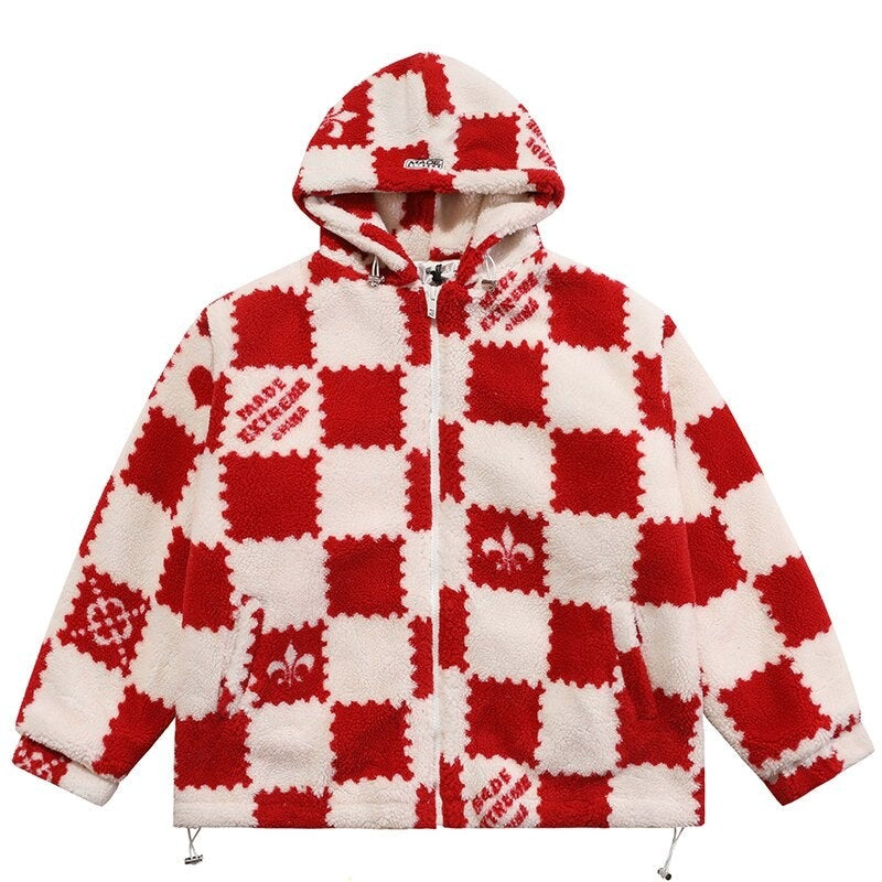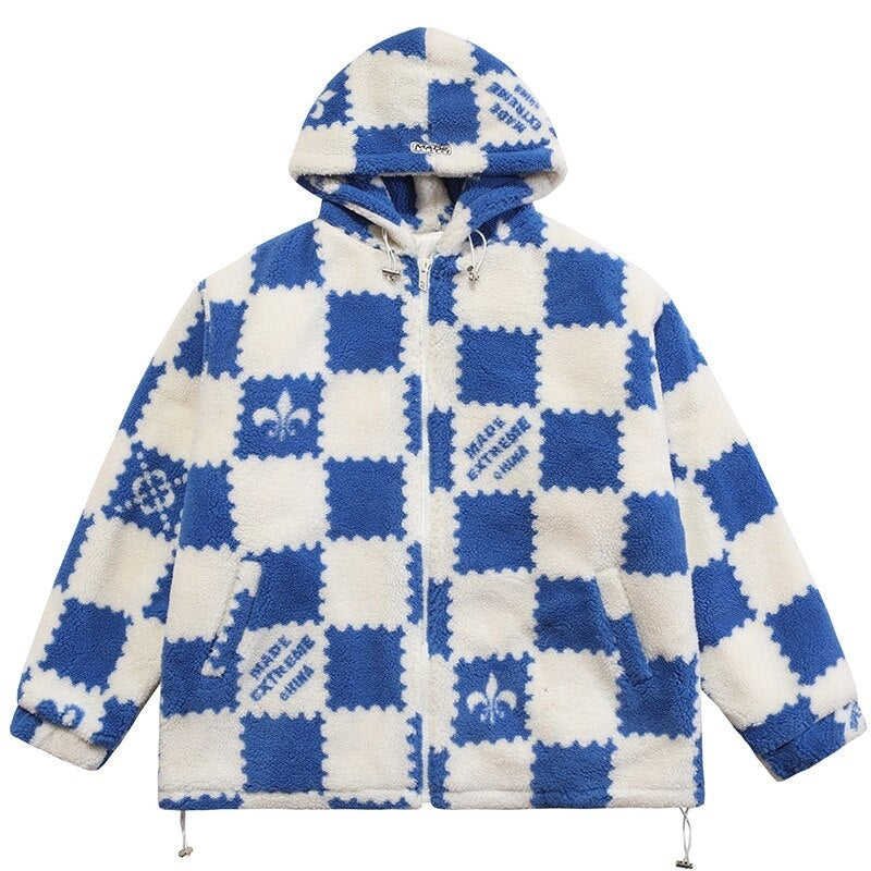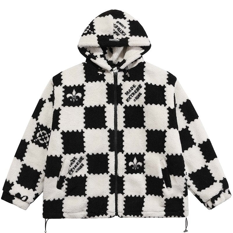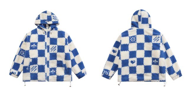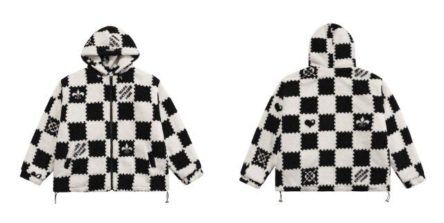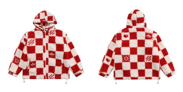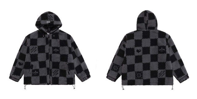 Fashion Plaid Print Lambswool Winter Jacket Couple Streetwear