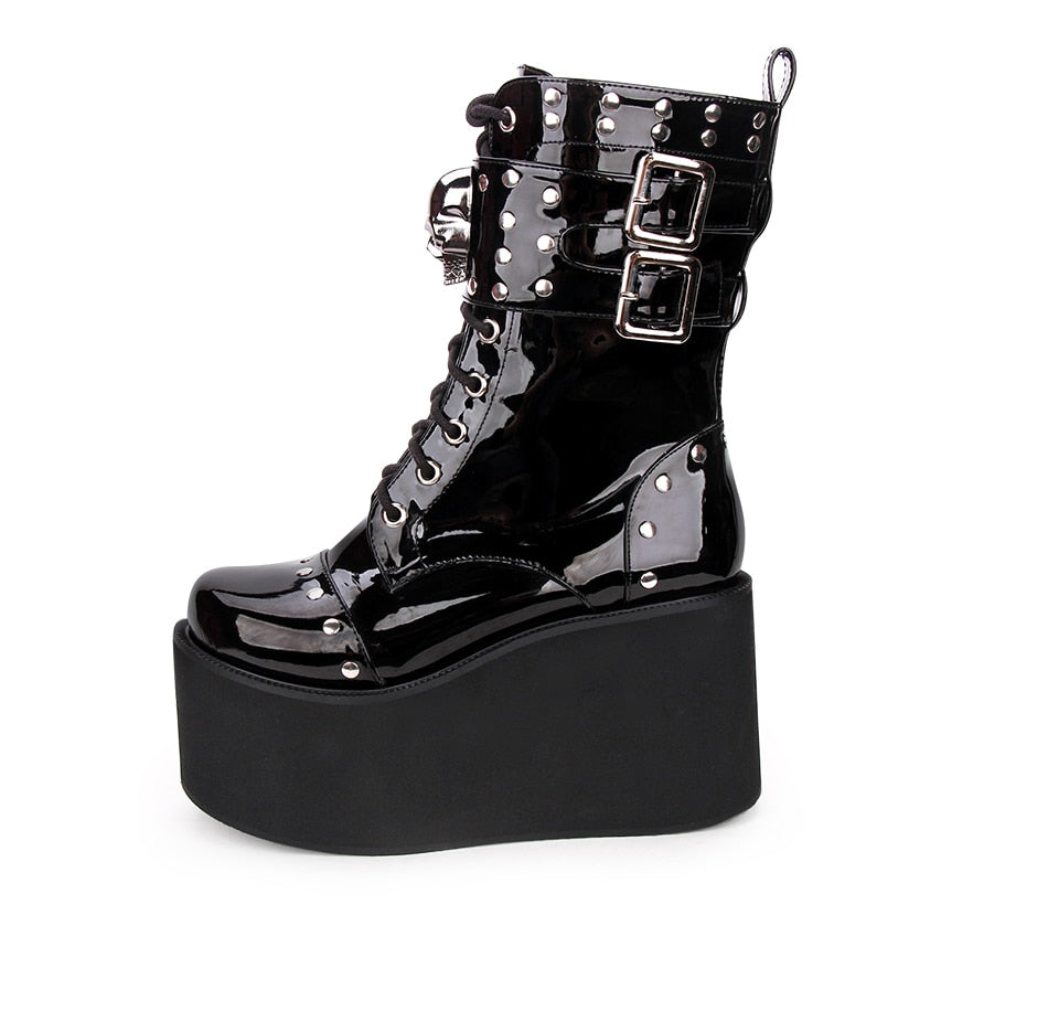 Fashion Rivet Skull Gothic Punk Rock Lace-up Boots Block Heel Thick Platform Punk Lolita Cosplay Boots