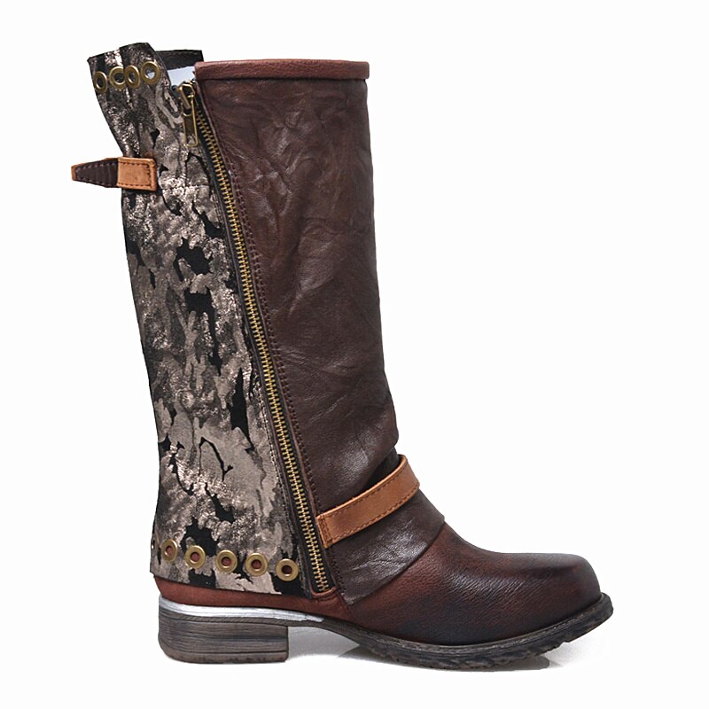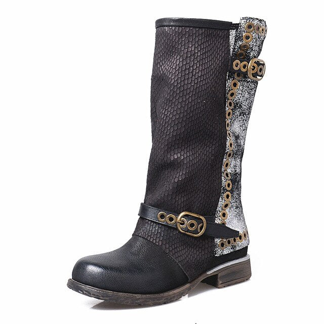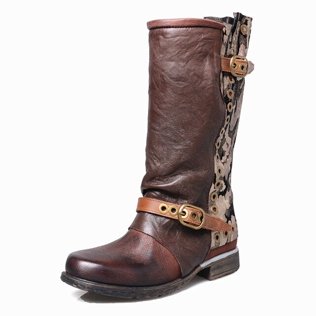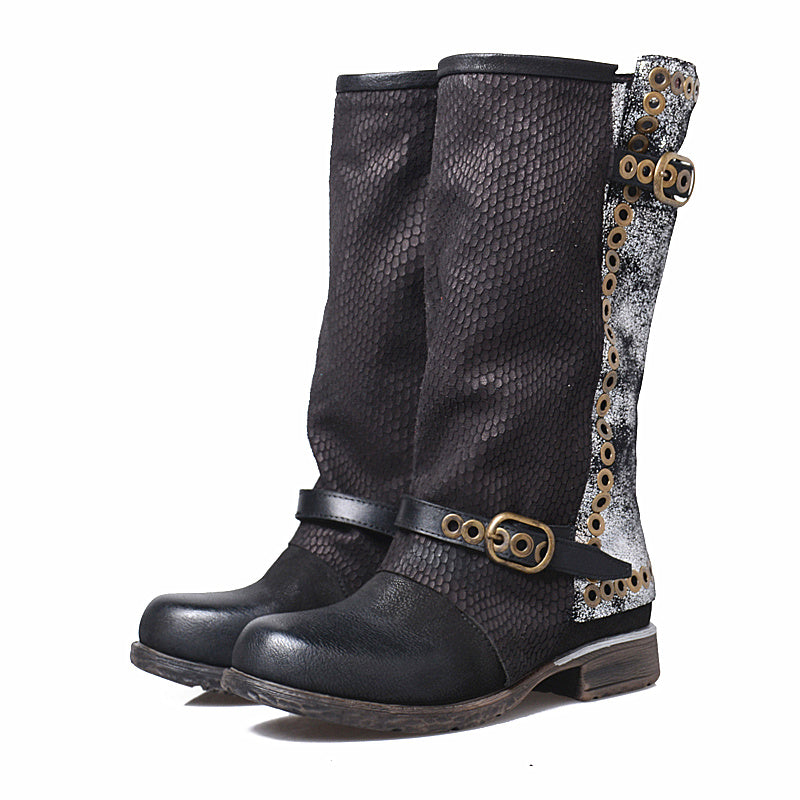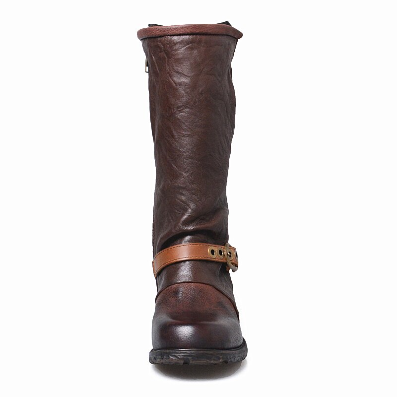 Fashion Women Winter Boots Genuine Leather Botas Feminina Round Toe Flats Shoes Woman Botines Mujer Mid Calf Bottine Femme