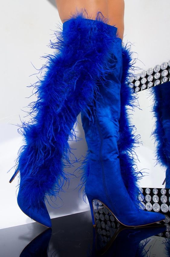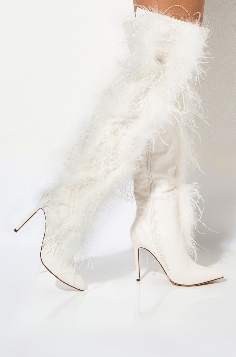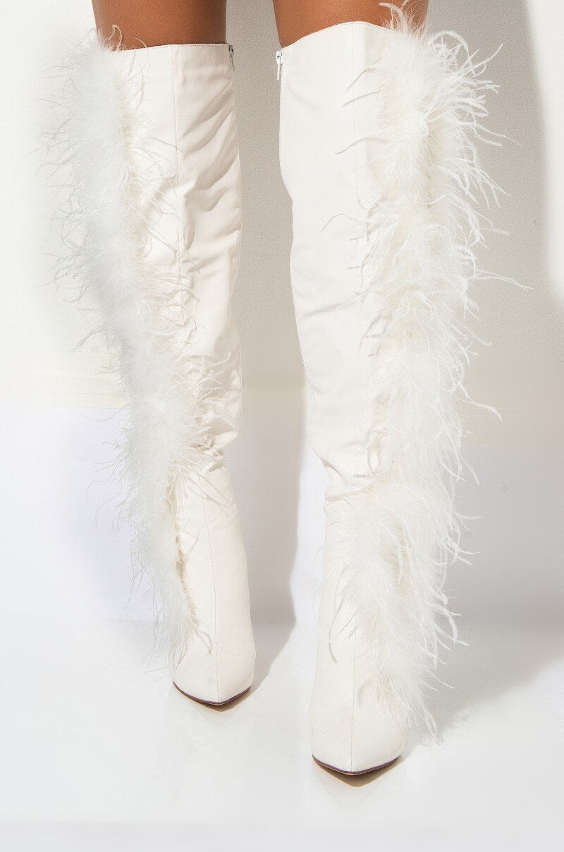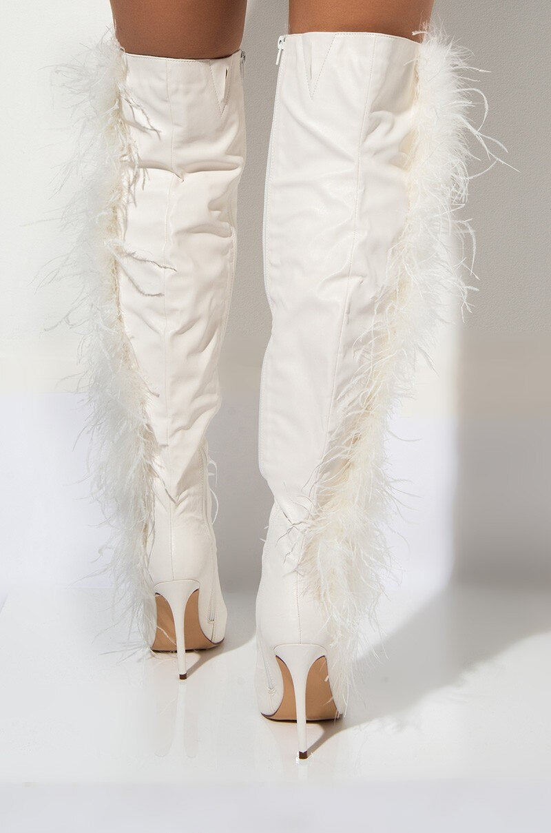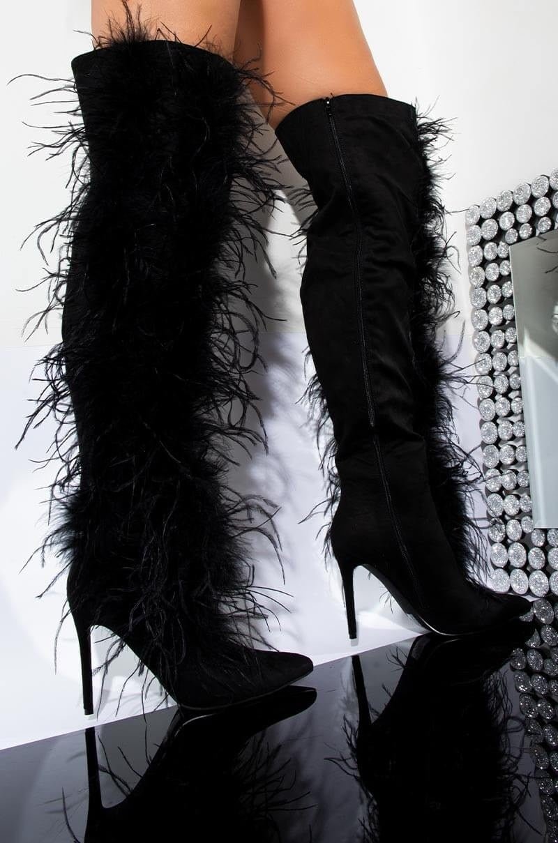 Feather Over The Knee Boots Women Super High Heel Winter Shoes