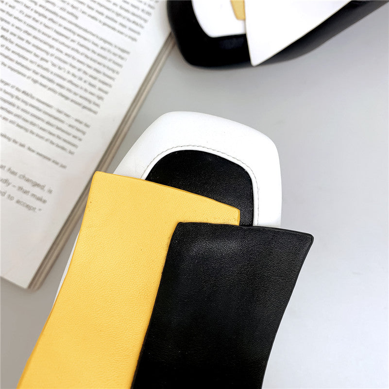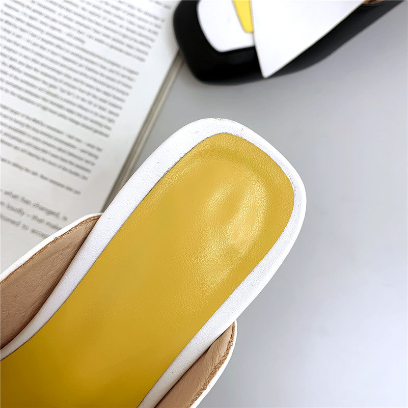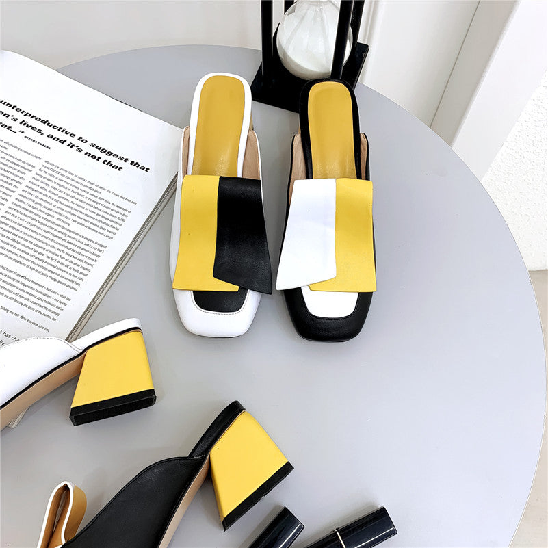 Fashion Mixed Colors Pu Leather Women Pumps Classic Rome Square Toe Hoof Heels Summer Sandals Mules Casual Shoes Woman
