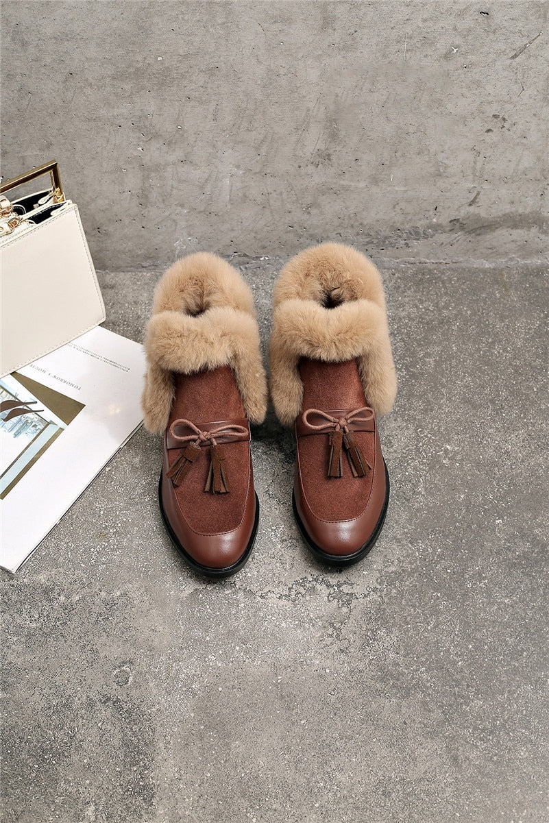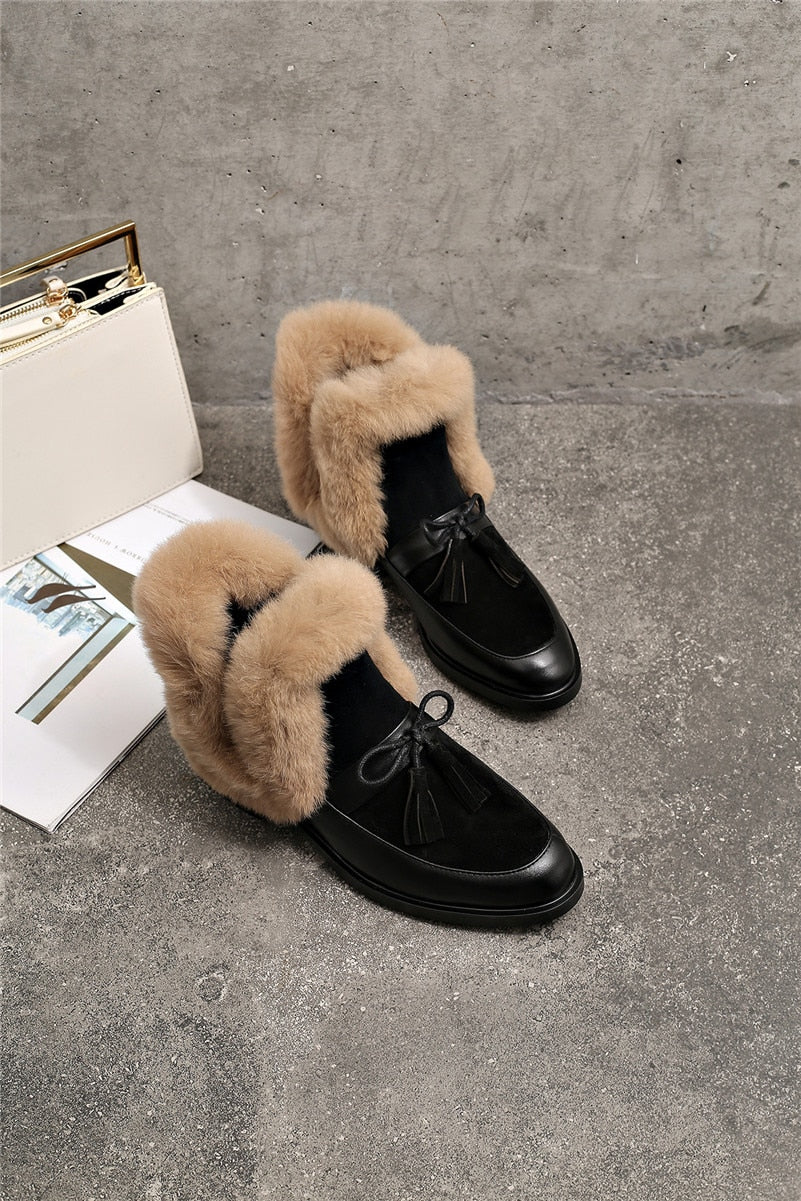Women Genuine Leather Ankle Boots Butterfly-knot Casual Basic Shoes Woman New Autumn Winter Short Snow Boots