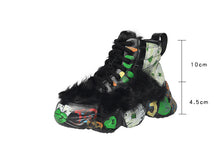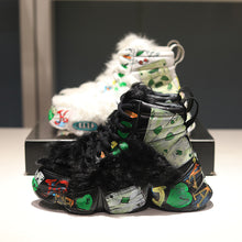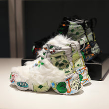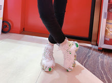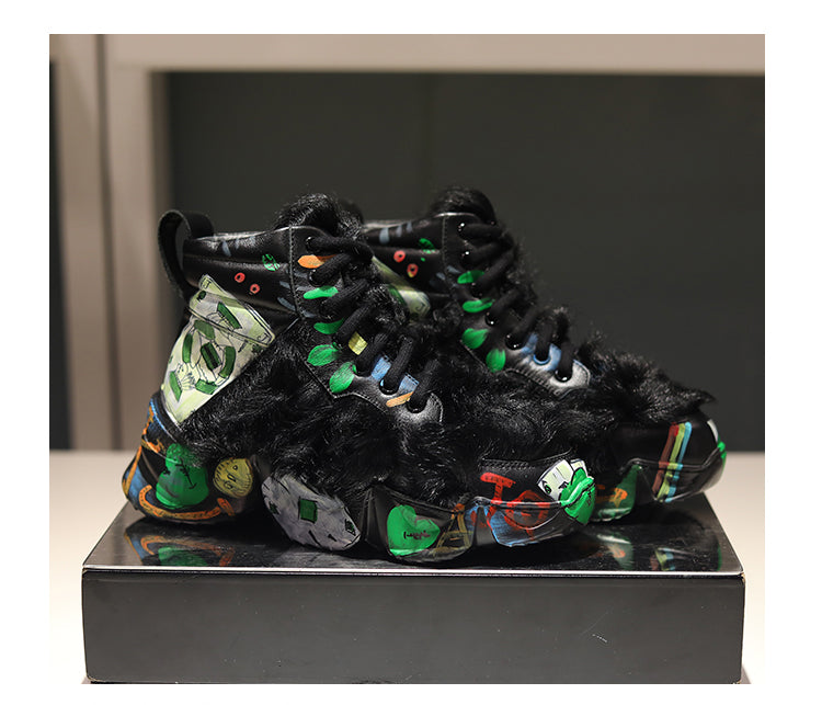 European leather maomao short boots new winter warm thick bottom graffiti curly high help female short boots