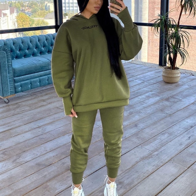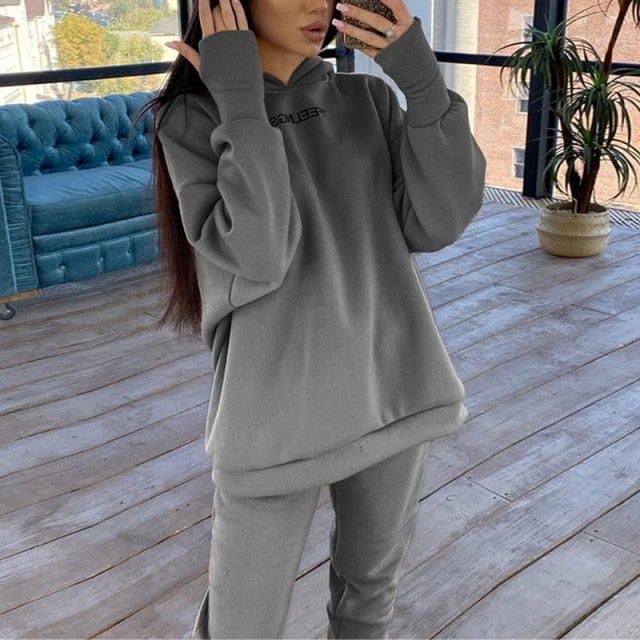 Style 1: Fleece Print Hoodies Trousers Women's Set