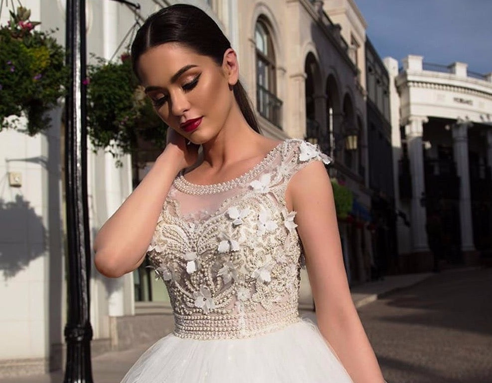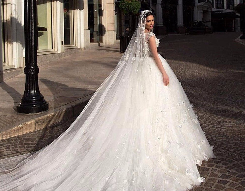 Flowers Ball Gown Wedding Dress With Picture Veil Suknia Slubna Buttons Up Back Full Pearls Body Tulle Dresses Robe De Mariage