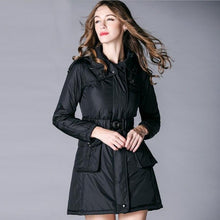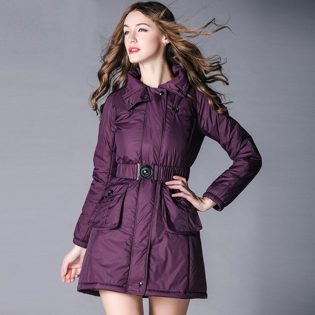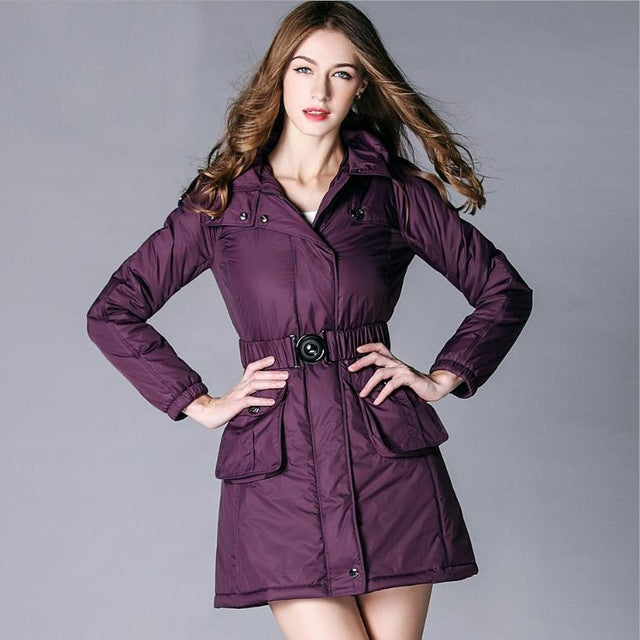 Fluffy cotton coats Winter England style was thin slim warm cotton coat parkas female thick longer hooded jacket with belt F152