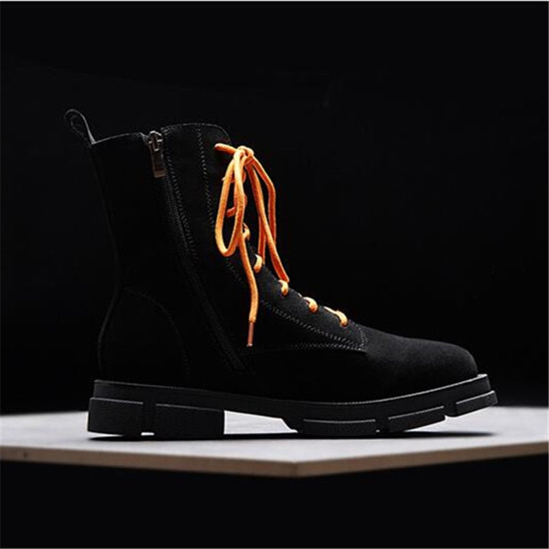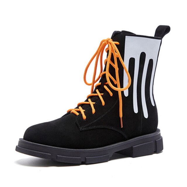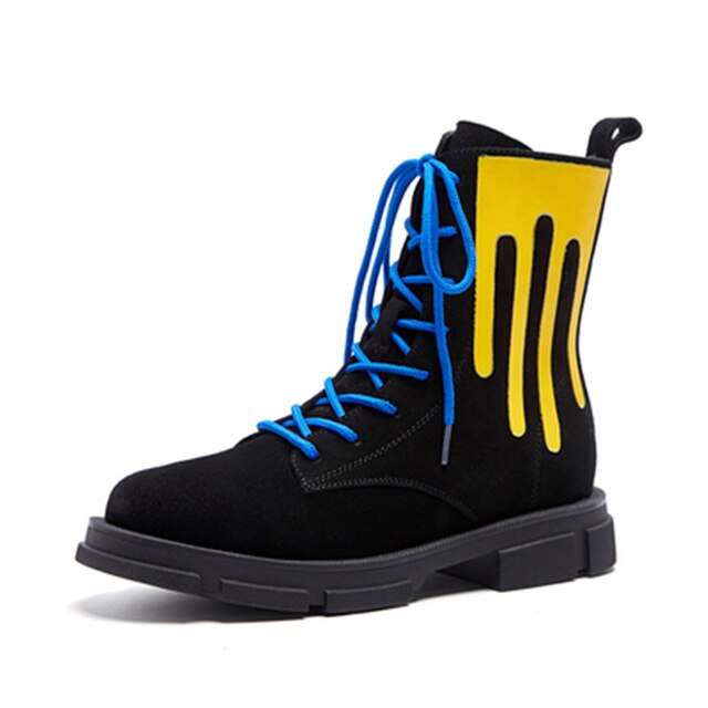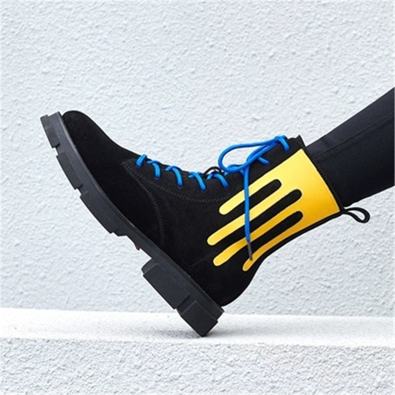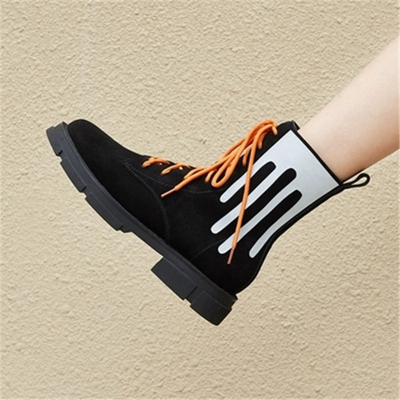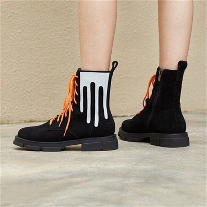 Hot Black Suede Leather Mixed Color Women Ankle Boots For Women Lace Up Platform Flats Botines Mujer Shoes Woman