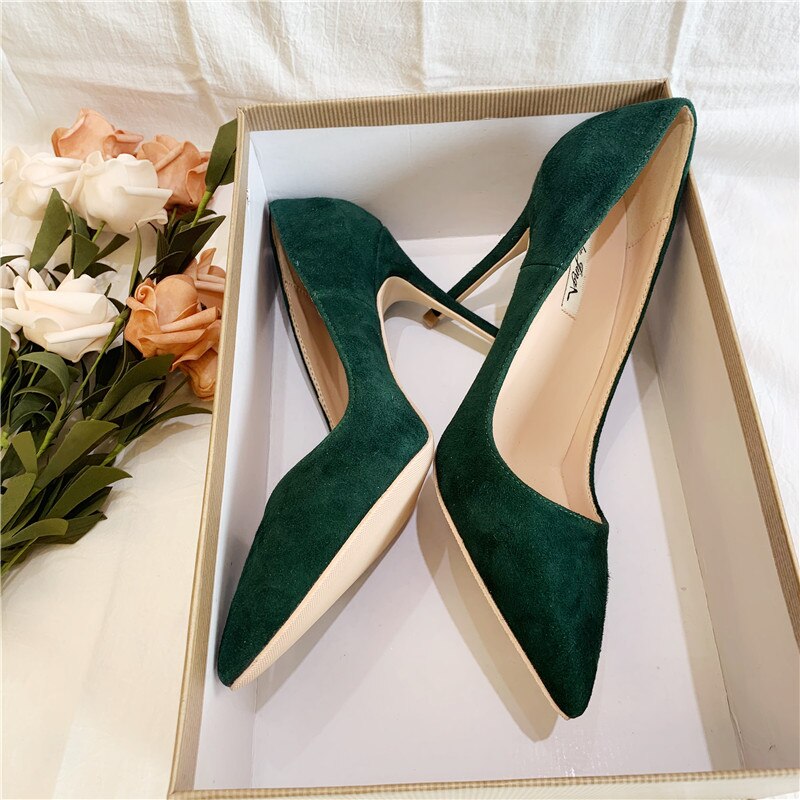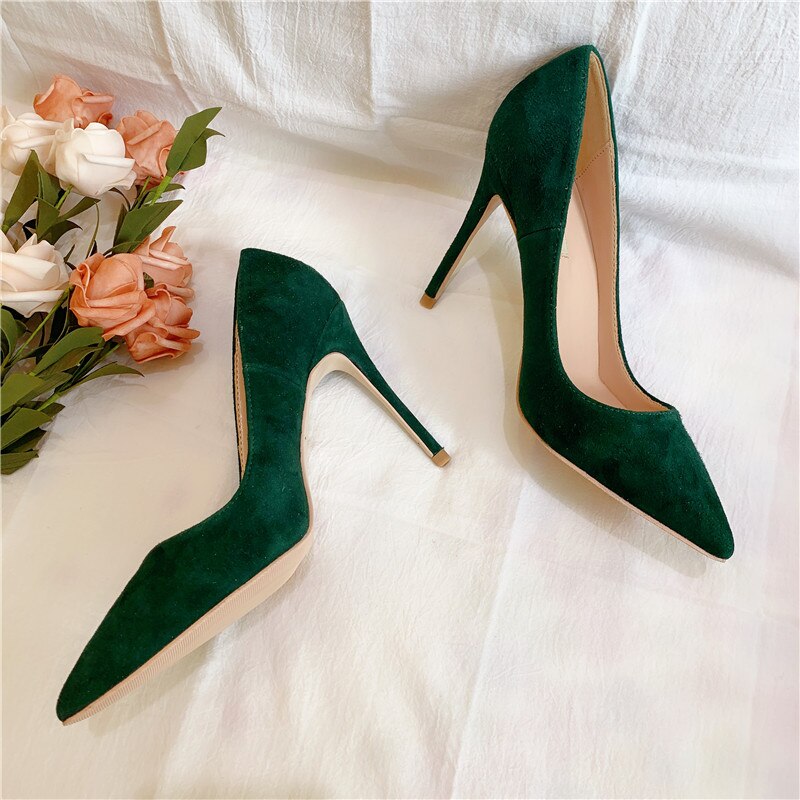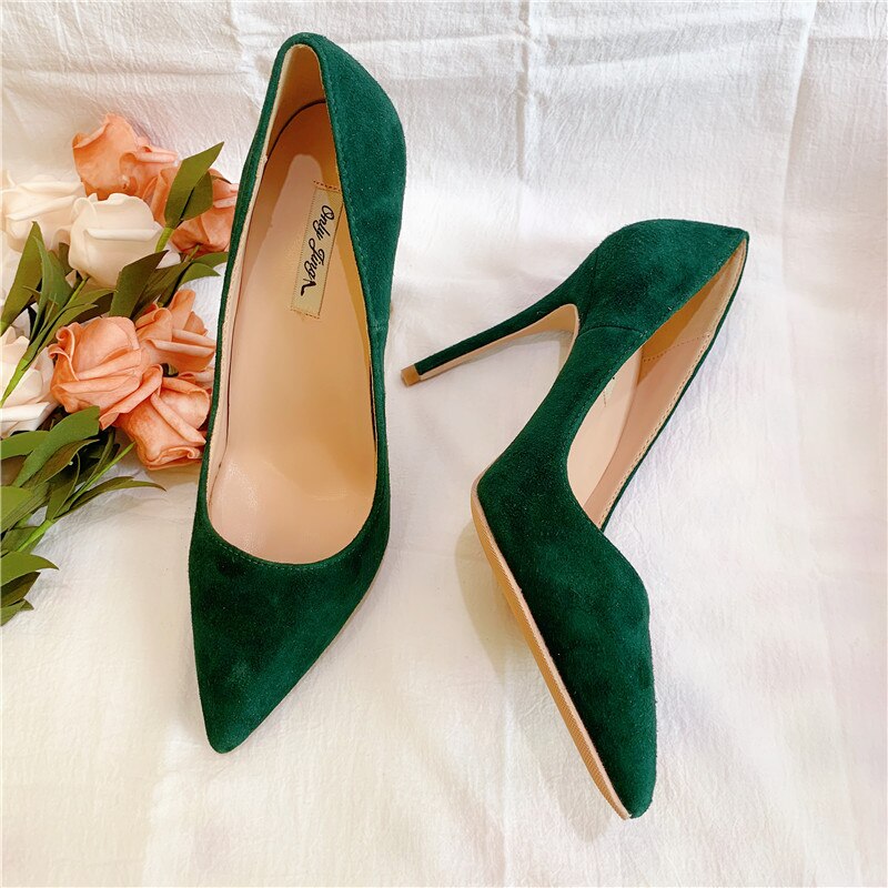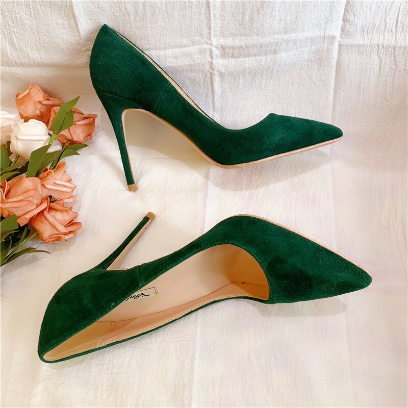 fashion women Pumps green suede leather Pointy toe high heels pearls shoes bride wedding shoes 12cm 10cm 8cm
