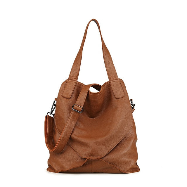 Full Genuine Leather Shoulder Bag Women Large Capacity Daily Bag Brand Designers Tote Purse High Quality Brown Shopping Bags