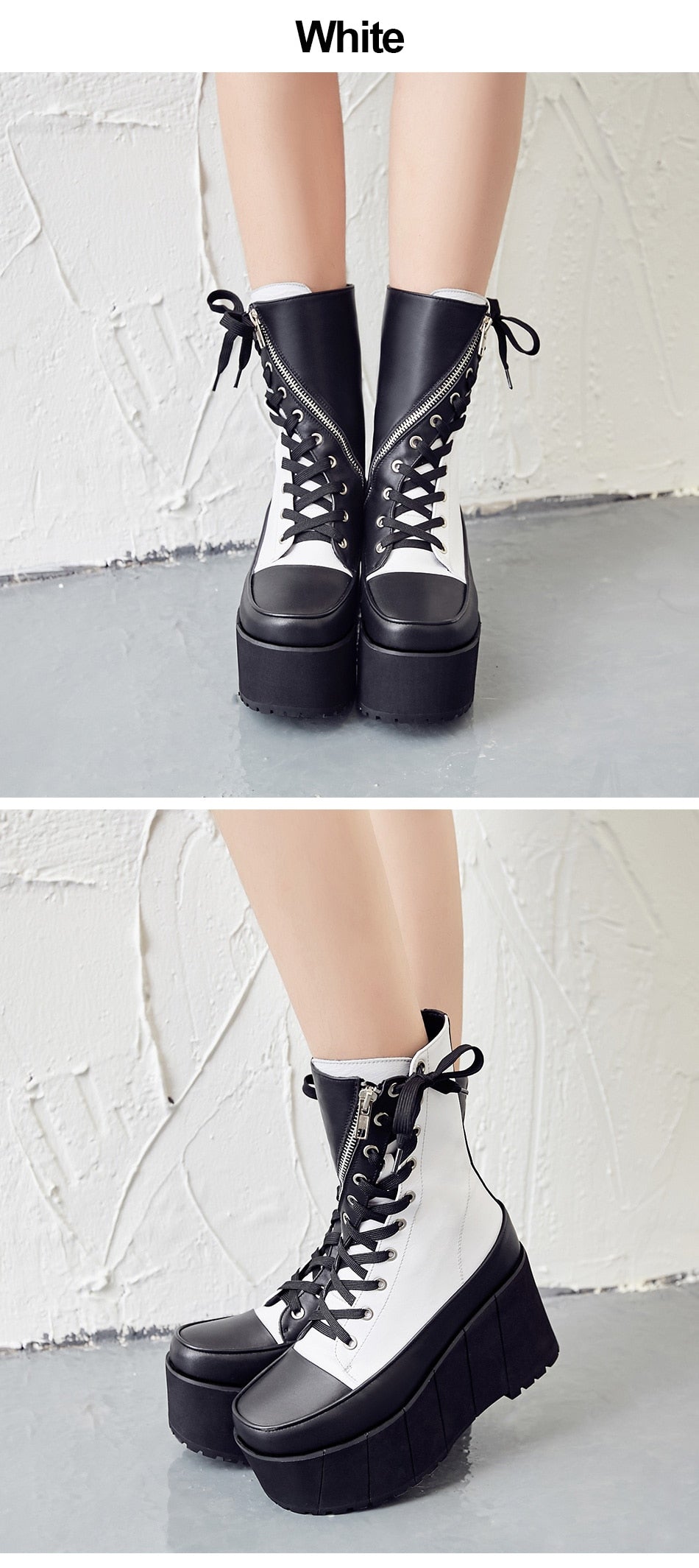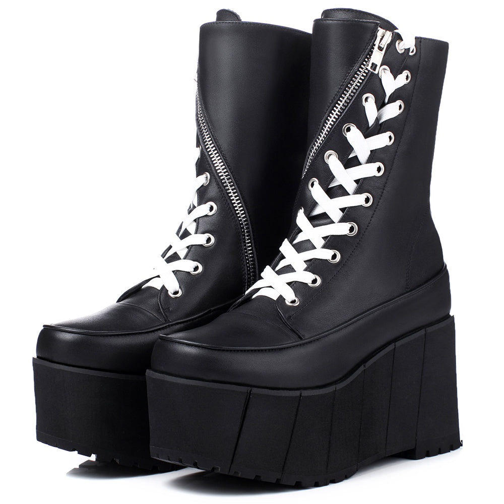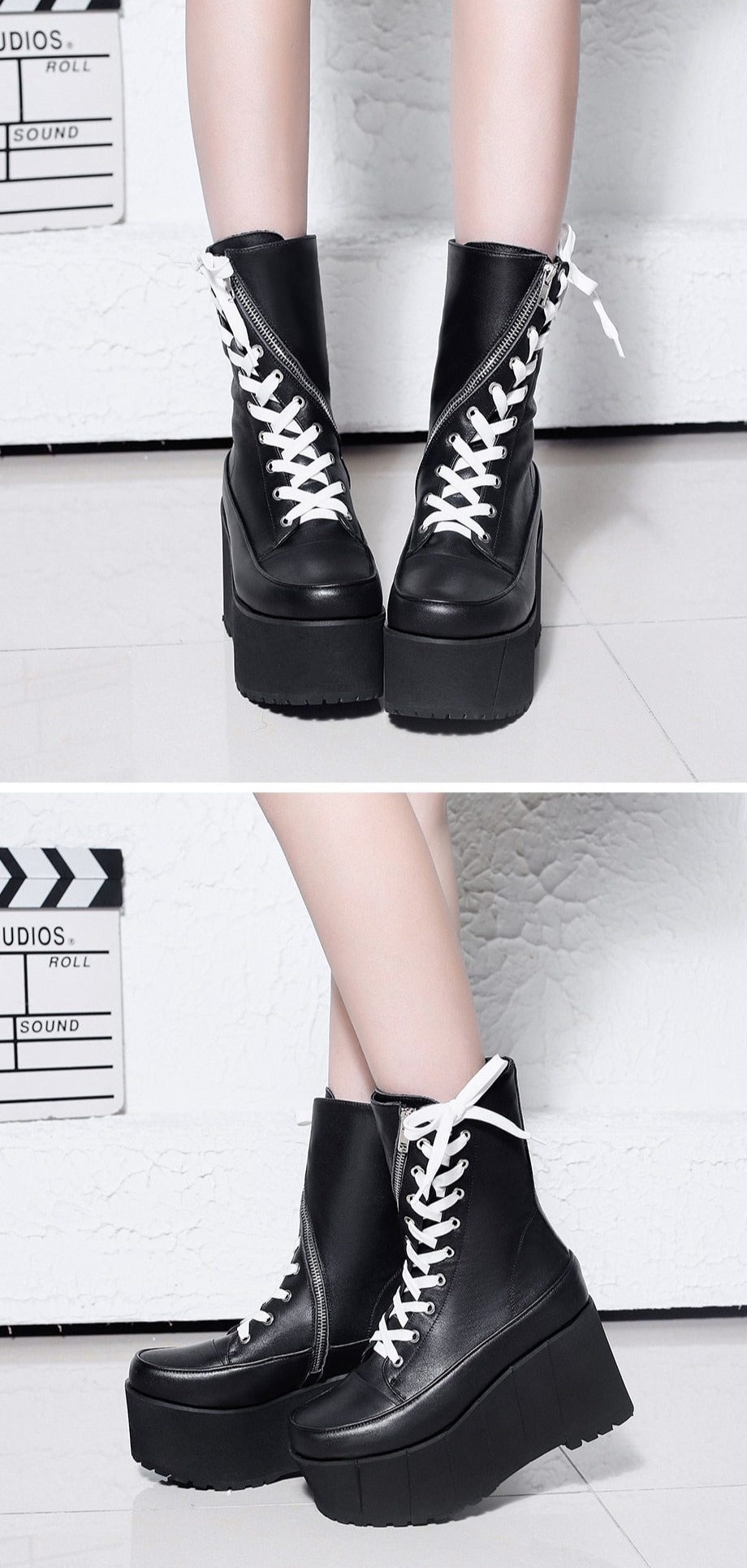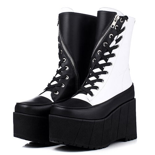 Handmade Genuine Leather Boots Women White Spring Autumn Fashion Zipper Motorcyle Boots Woman Thick Bottom Wedge Shoes