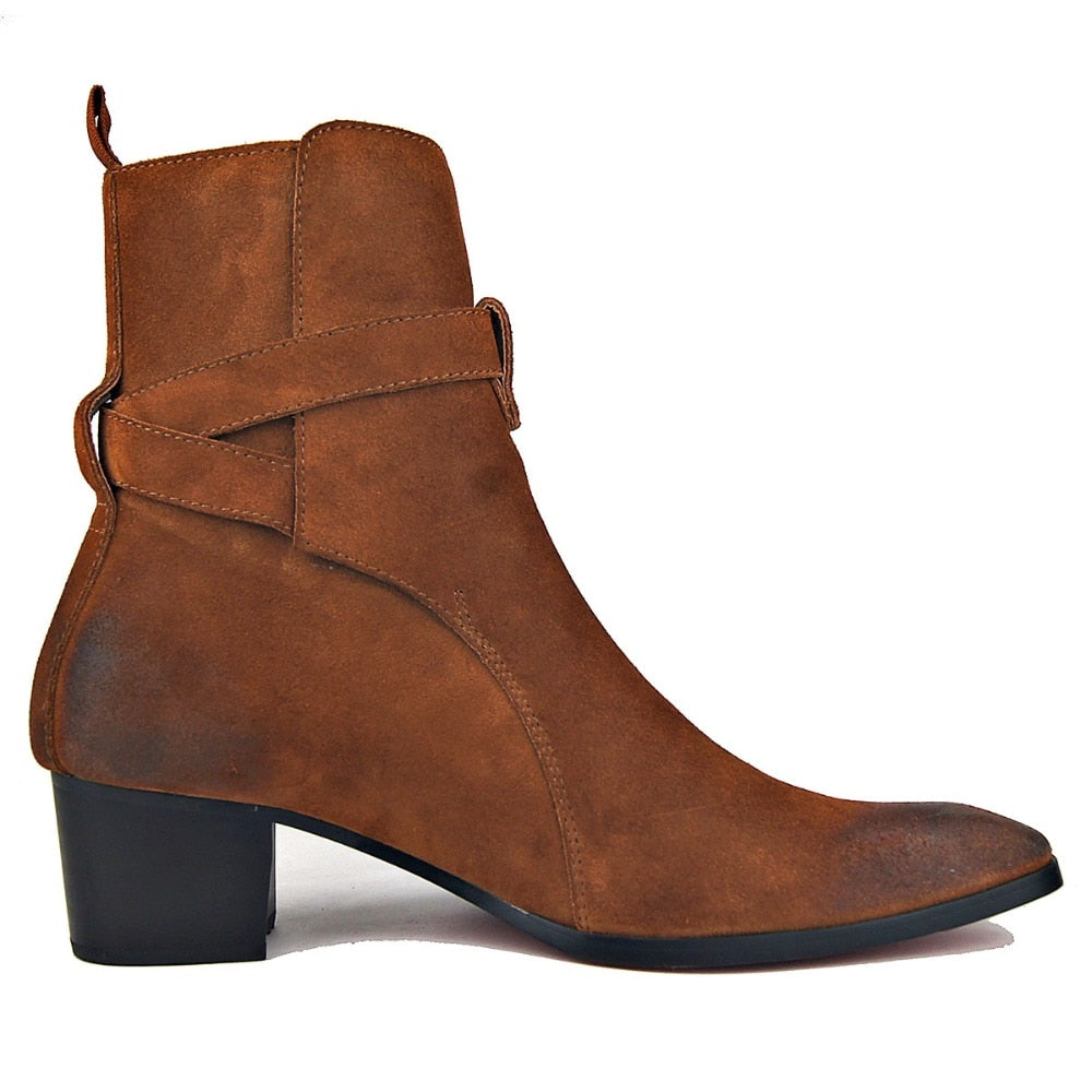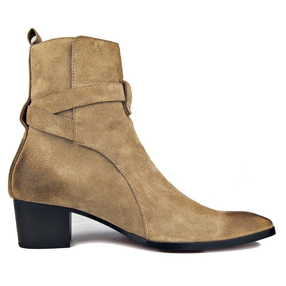 Genuine Cow Leather Suede high heel Men Boots high top Zipper fashion British style fashion men's Chelsea Boots Hot Sales