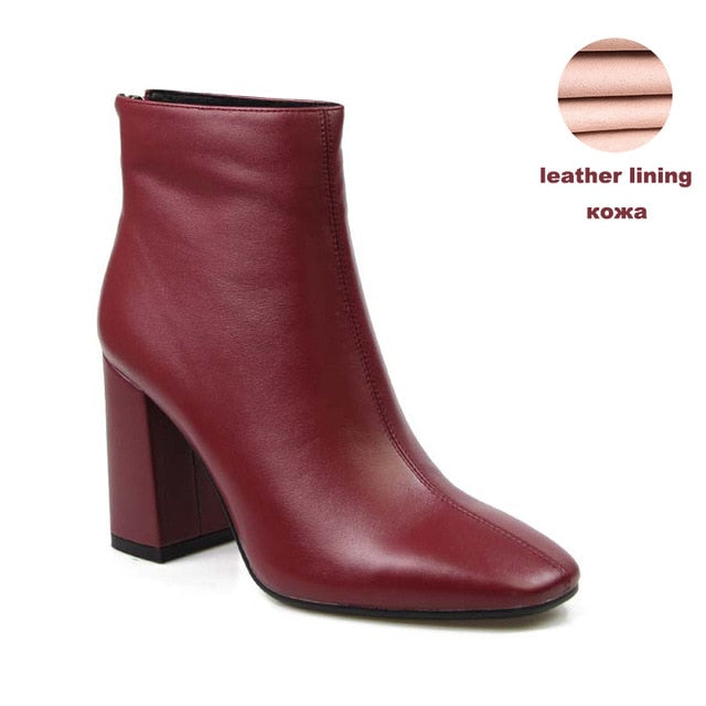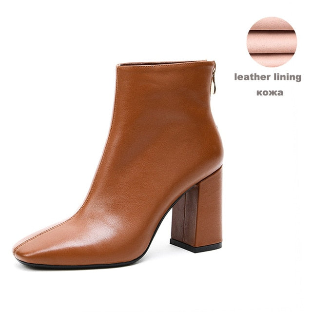 Genuine Leather Footwear 2020 New Arrival Ankle Boots Rubber Riding Feminine Shoes Women's High Heels Booties