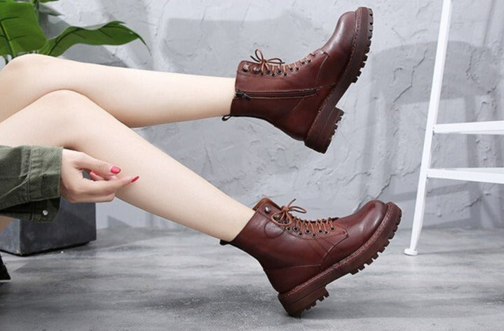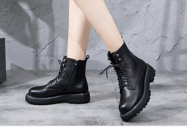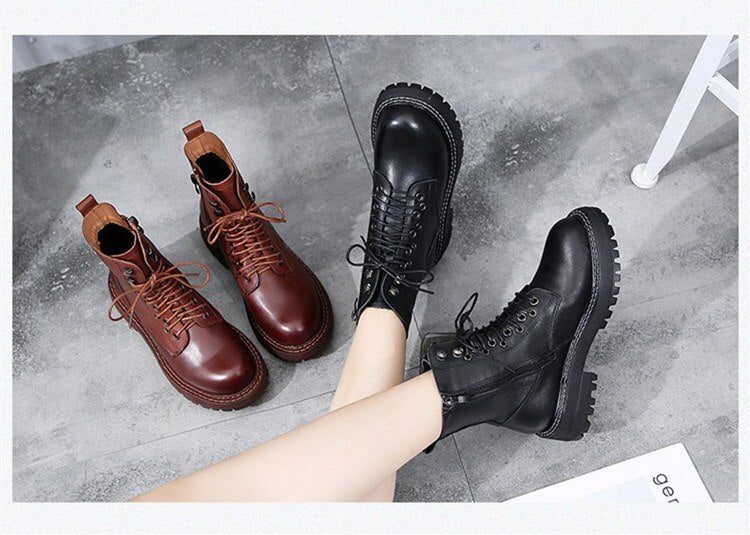 Genuine Leather Martin Boots Women British Style 2020 New Retro Head Layer Cowhide Short Boots Ladies Casual Women Boots Spring