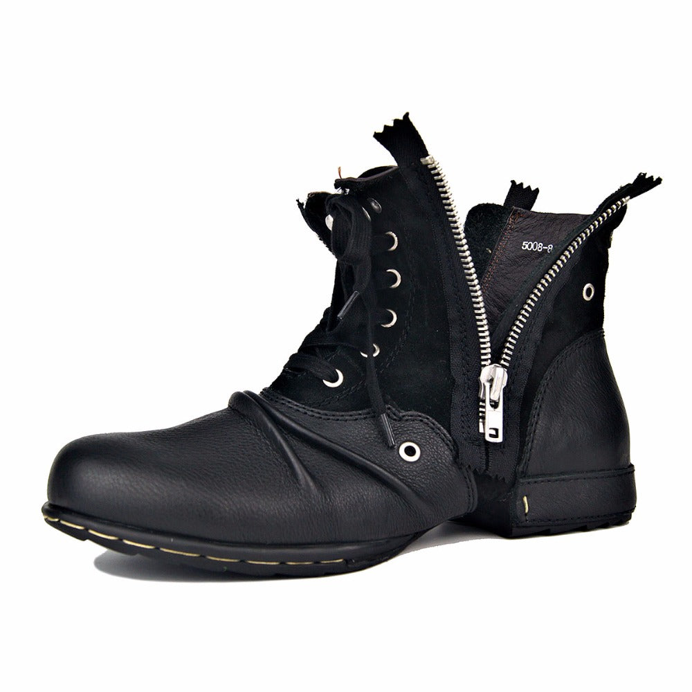 Genuine Leather Men Motorcycle Boots Autumn Ankle Boots