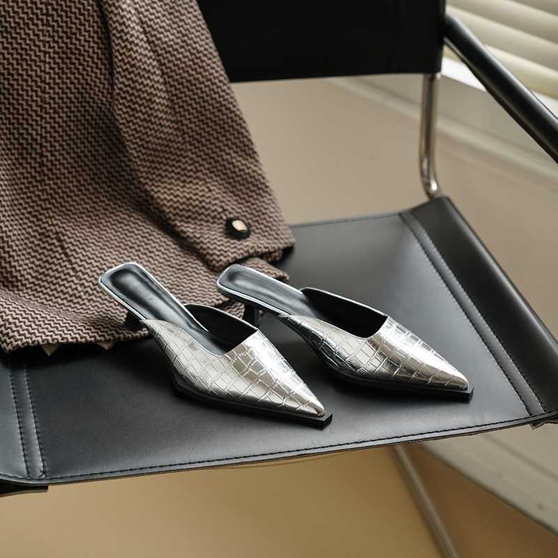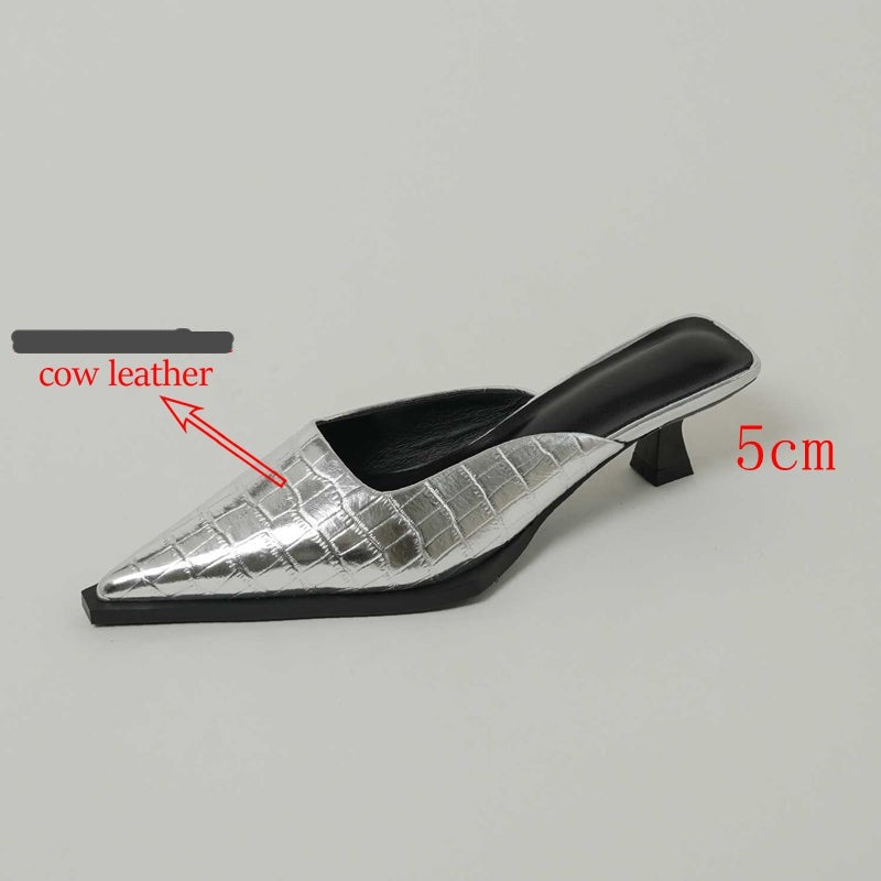 Genuine Leather Pointed Toe Thin Low Heels Mules Women Pumps