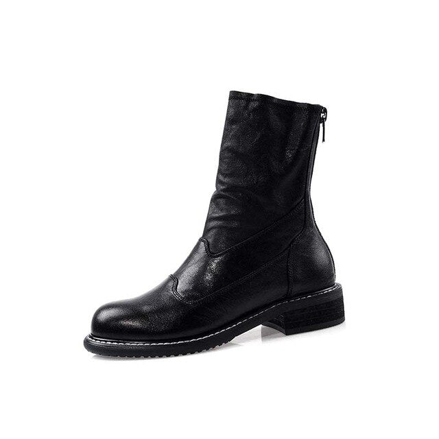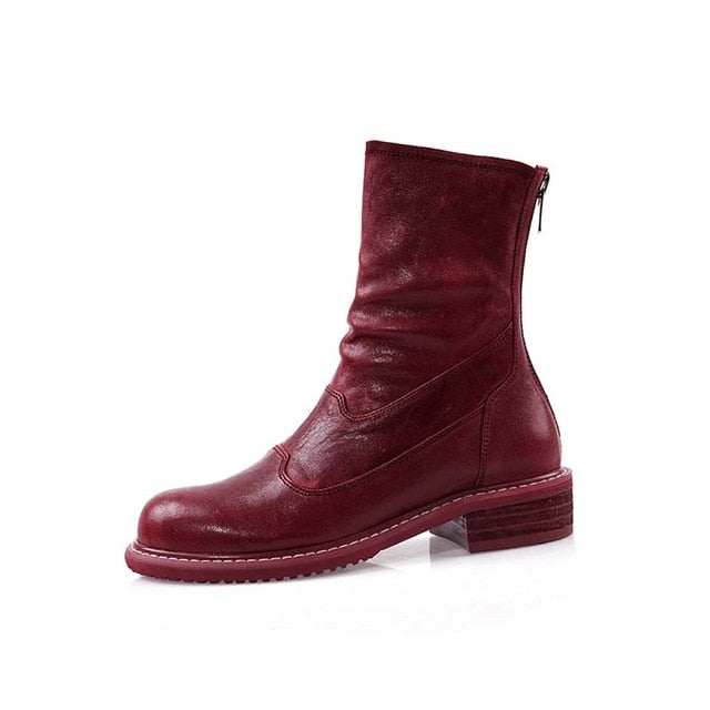 Genuine Leather Short Boots Winter Women Shoes Handmade Sewing Soft Outsole Lazy Shoes Flat Boots Red Beige Black Size 33-42