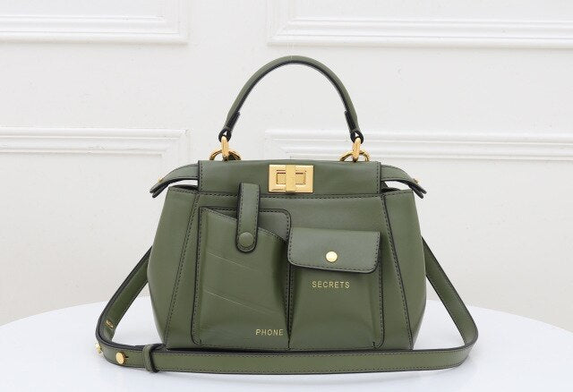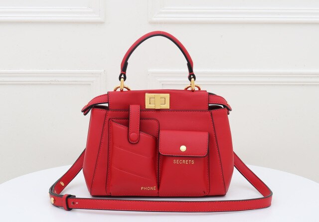 Genuine Leather Vintage Pleat Stitching Shoulder Bag Women High Quality Catwalk Show Fashion Two Pocket Designer Handbag Purse