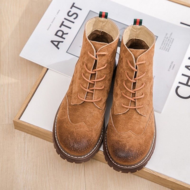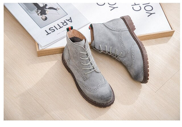 Genuine Leather Women Martin Boots 2020 New Spring Suede Pigskin Women Booties Lace Up Women Ankle Boots