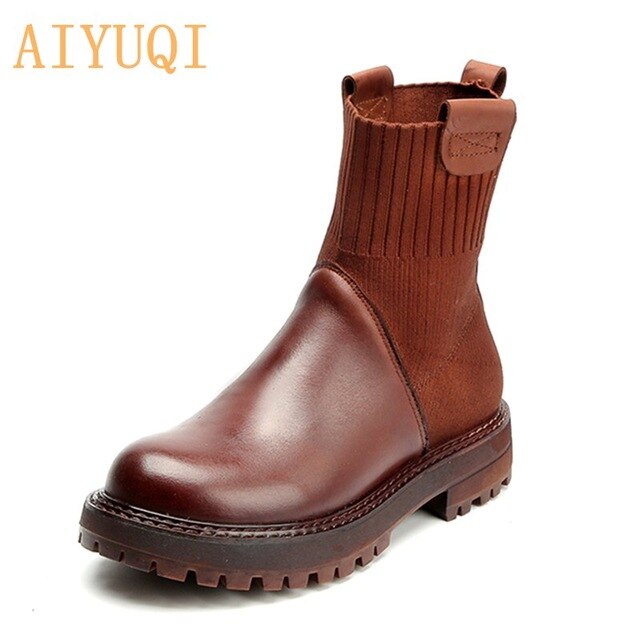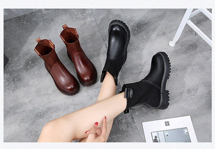 Genuinne Leather boots women 2020 spring new retro casual boots women's Martin boots British style socks women's boots