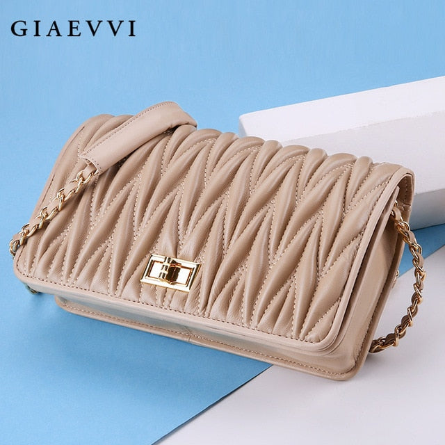 Women Messenger Bags Luxury Genuine Leather Handbags Designer Chain Shoulder Bag Crossbody for Lady Fold Sheepskin