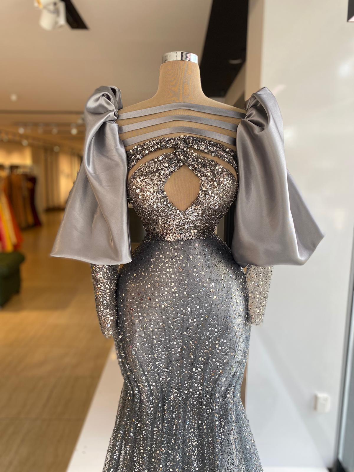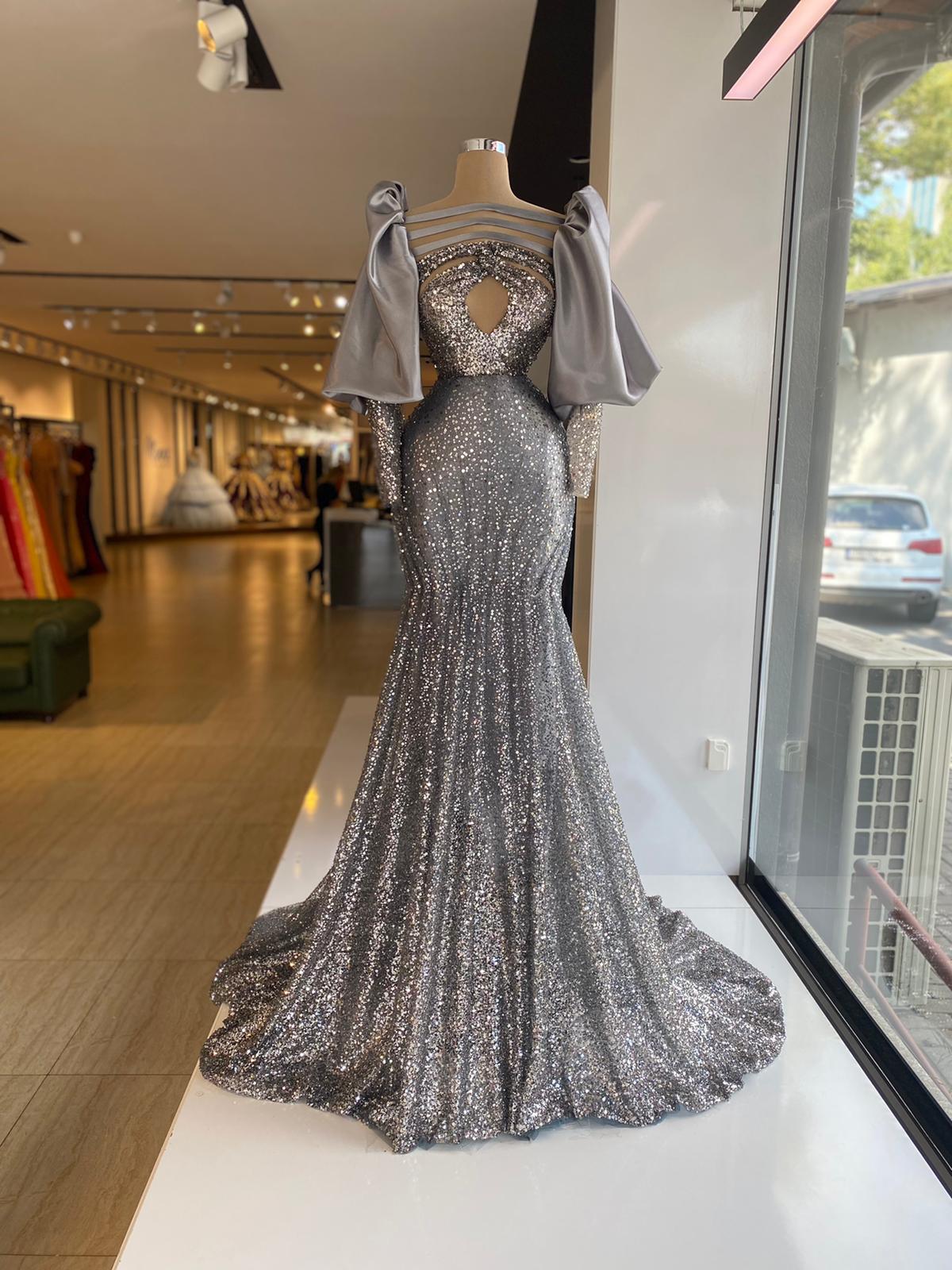 Glitter Elegant Mermaid Evening Dresses Puff Long Sleeves