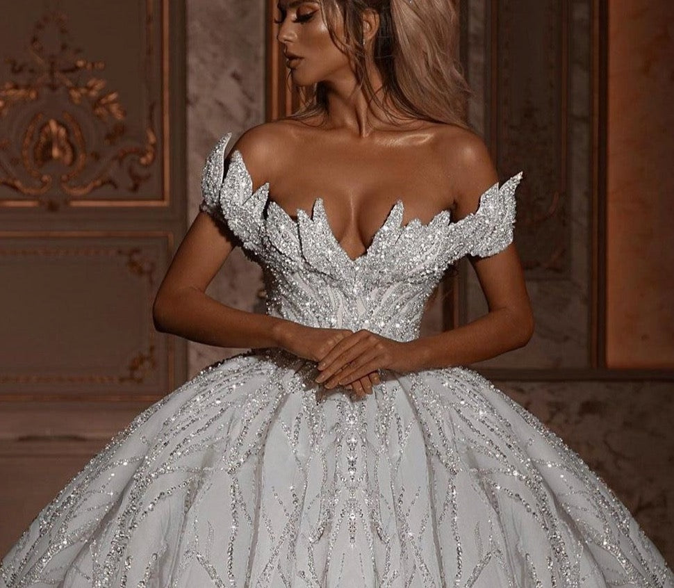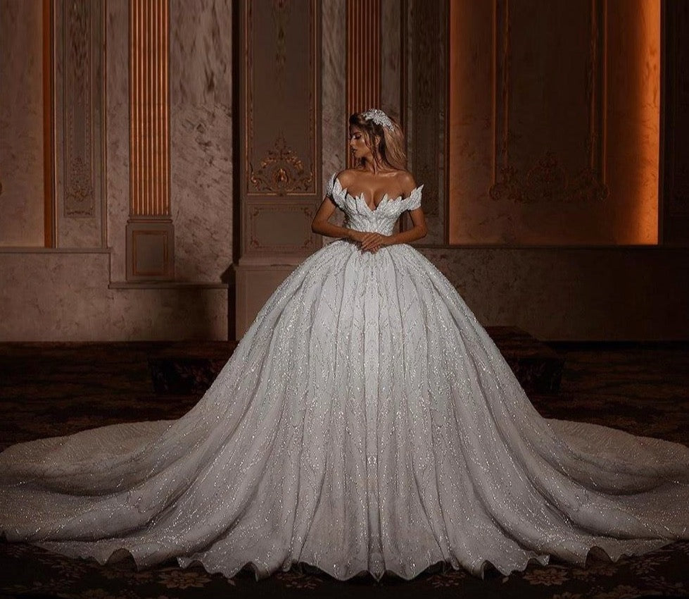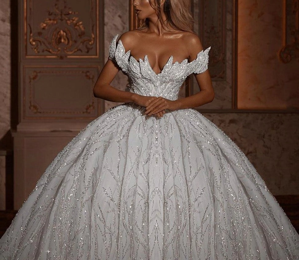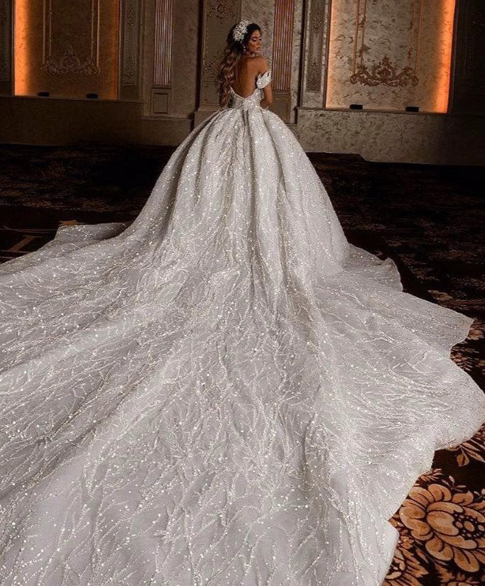 Glitter Off Shoulder Ball Gown Wedding Dresses