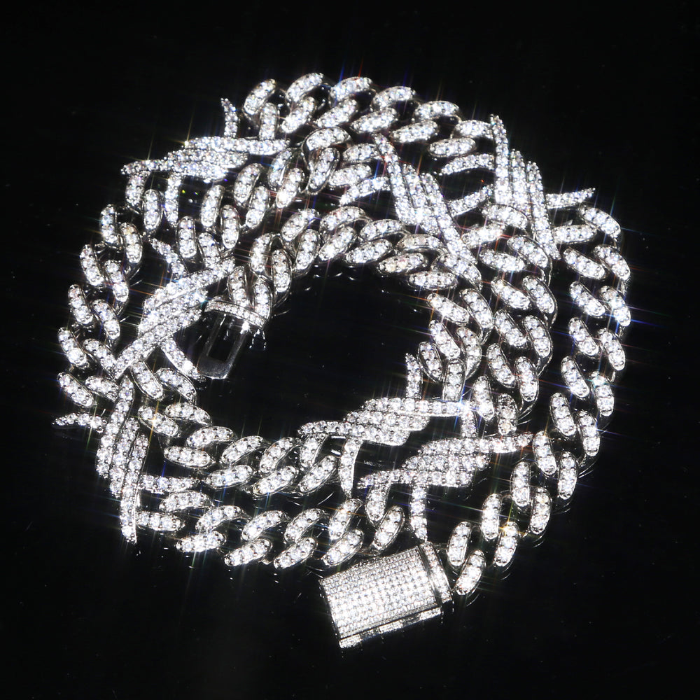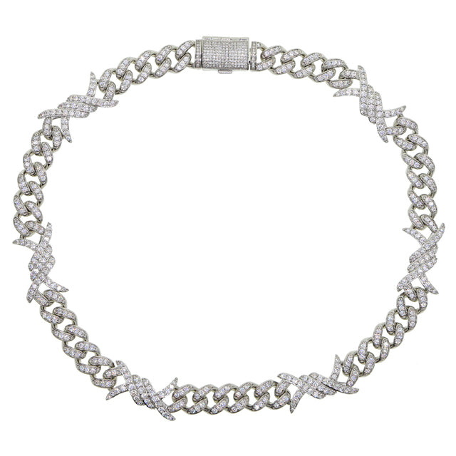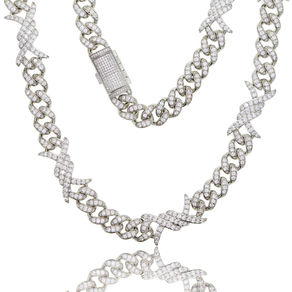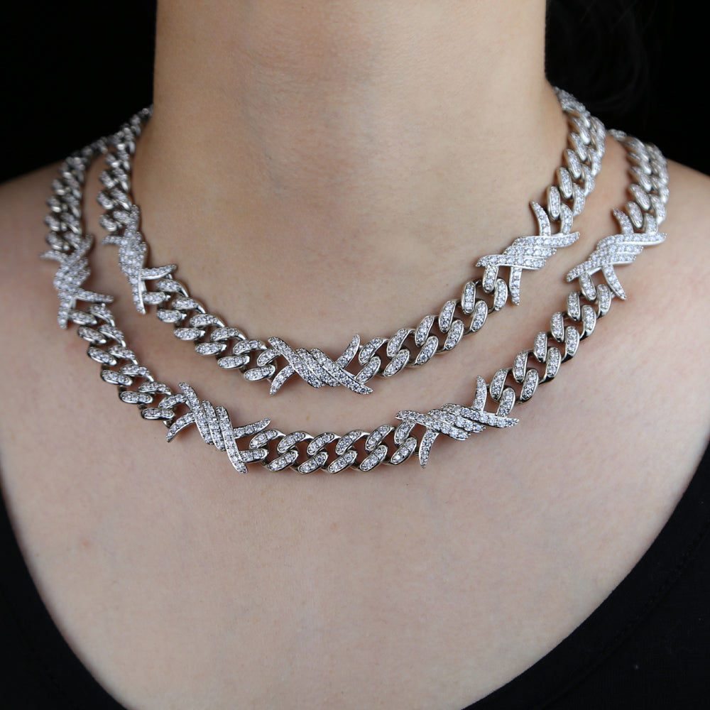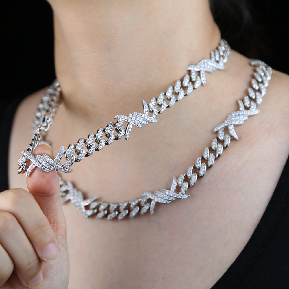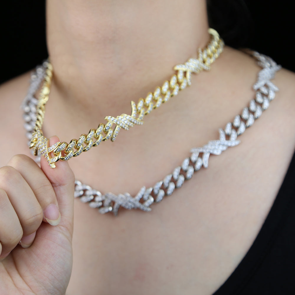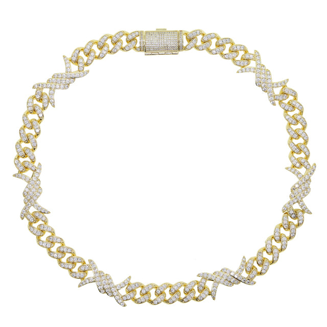 Gold Plated Micro Pave 5A Cubic Zirconia Iced Out Bling Fashion Women Barbed CZ Wire Cuban Link Chain Choker Necklace