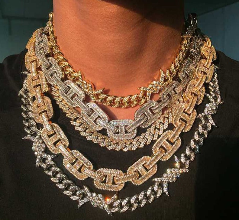 Gold Plated Cubic Zirconia Cuban Link Chain Choker Necklace