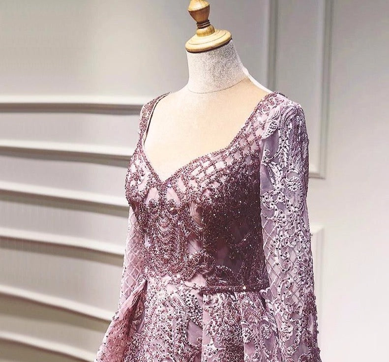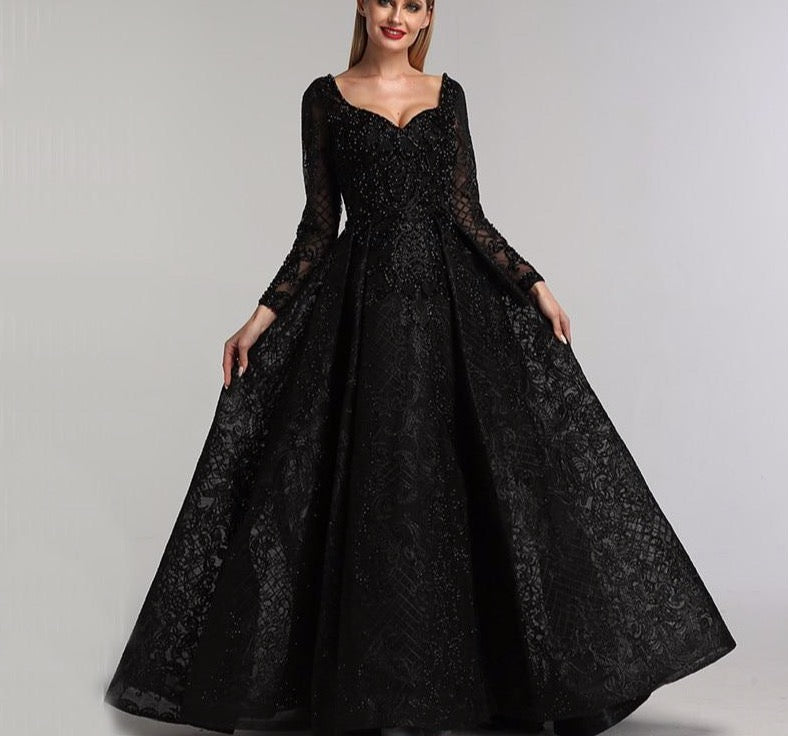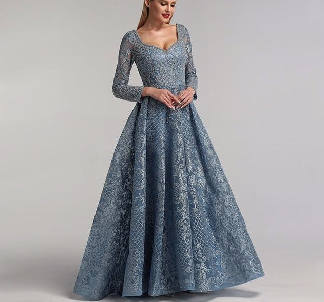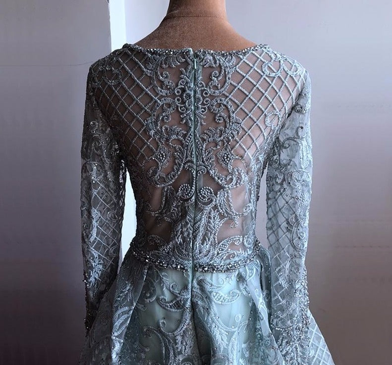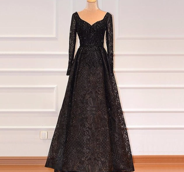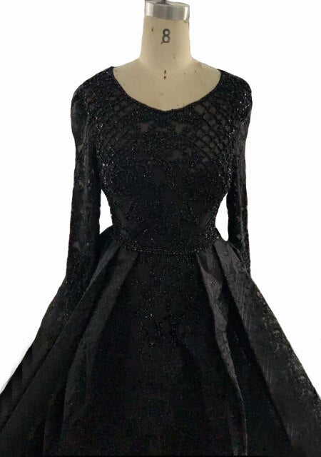 Grey Black Long Sleeves V-Neck Evening Dresses Real Photo Luxury Sexy Diamond Dubai Formal Dress