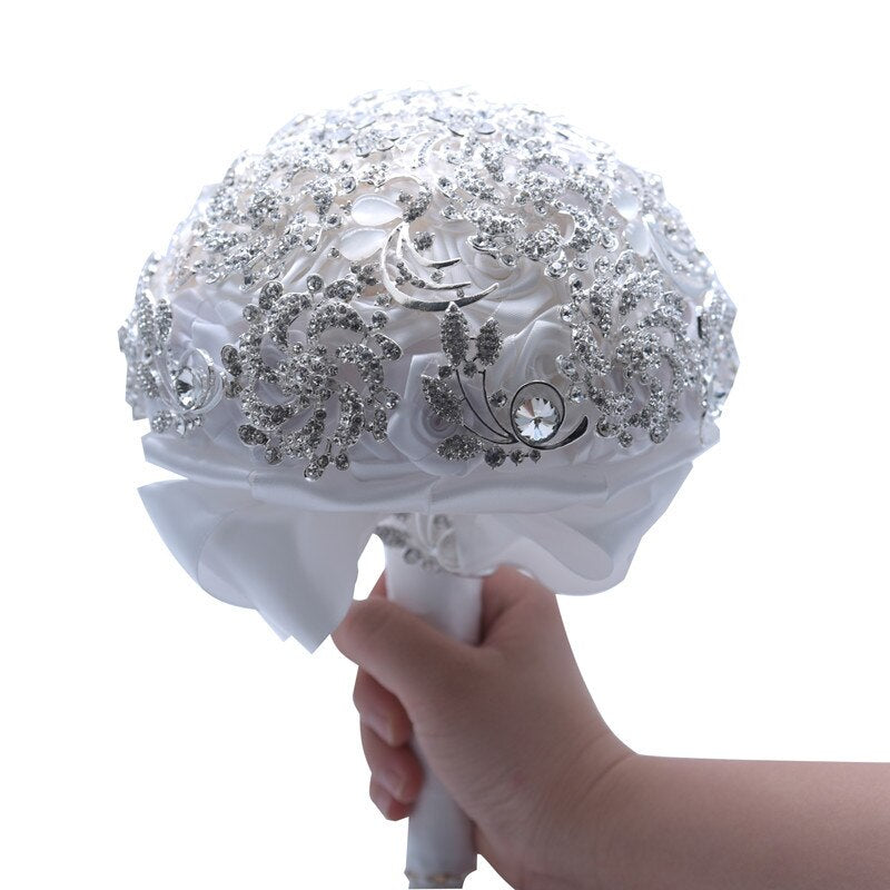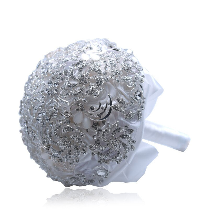 Handmade silver brooch bouquet high-end custom wedding bridal bouquets crystal diamond teardrop Bride 's Bouquet wedding decor