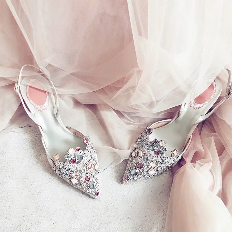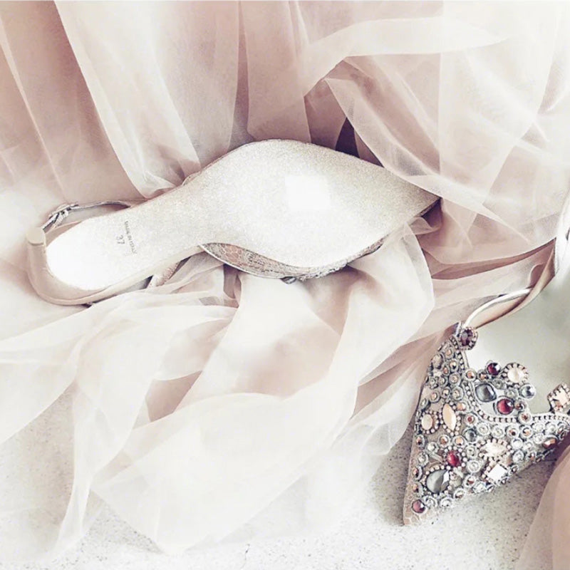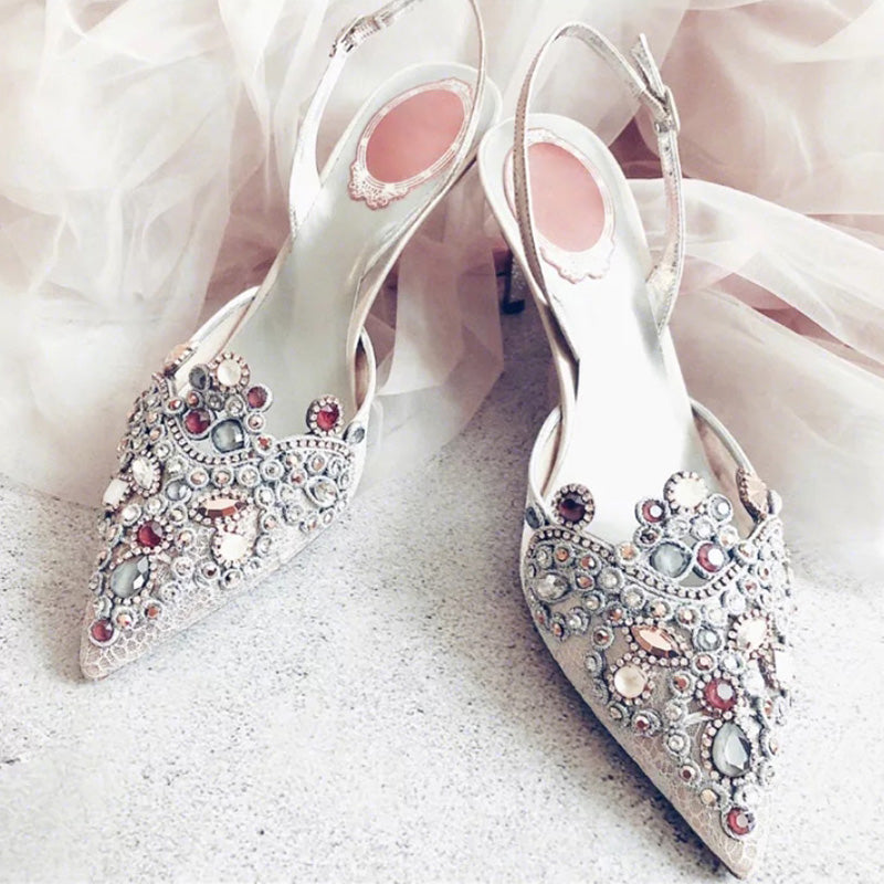 Handmade Wedding Shoes Crystal Bling Lace Elegant Women Pumps Women Thin High Heels Point toe Bridal Pumps Stiletto