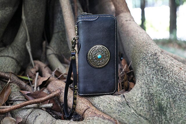 Handmade Women Manual Dyeing Wallets Purses Men Clutch Vegetable Tanned Leather Wallet Parts that can be rotated