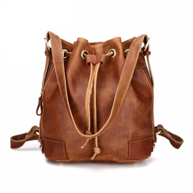 New genuine leather Women backpacks Korean casual shoulder bag bucket retro fashion ladies brown travel backpack