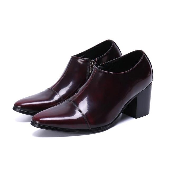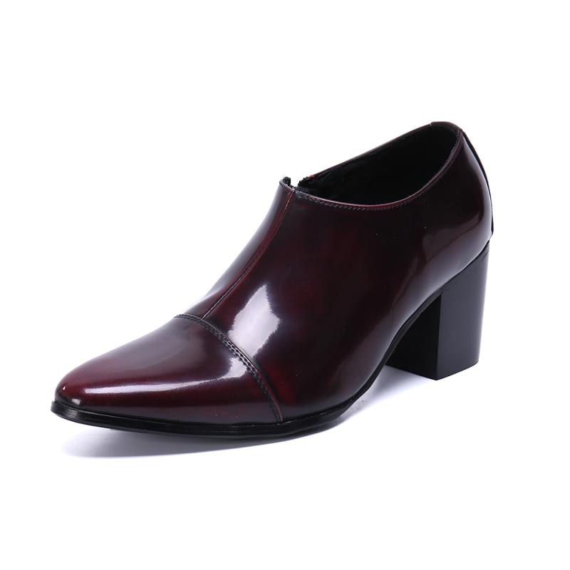 Height Increase Patent Leather Men Shoes Pointed Toe High Heels Dress Shoes Men's Slip-On Wedding Shoes Career Work Shoes 37-46