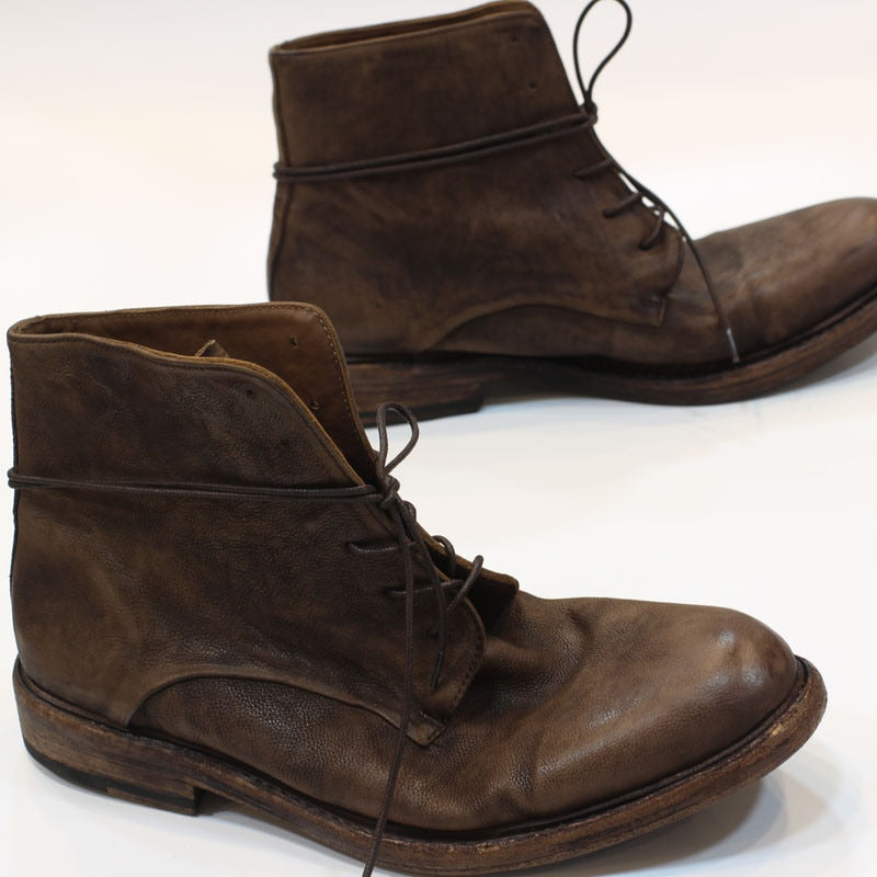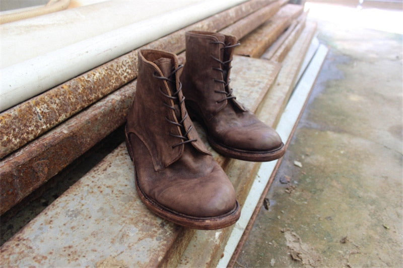 High End Handmade classic vintage Luxury Genuine Leather Sole Goodyear Boots ITALY Cow Leather Lace Up Motorcycles desert Boots