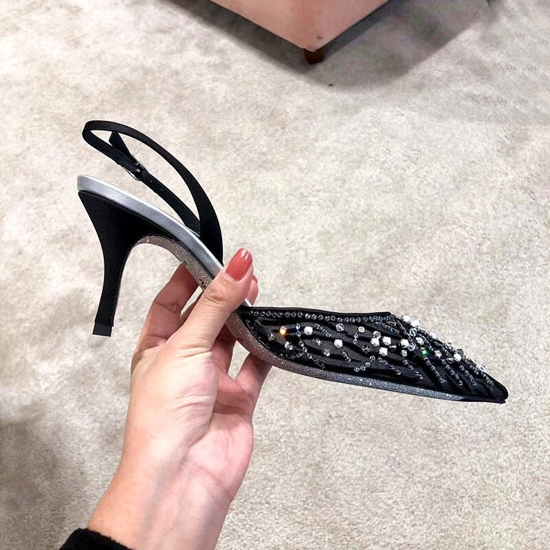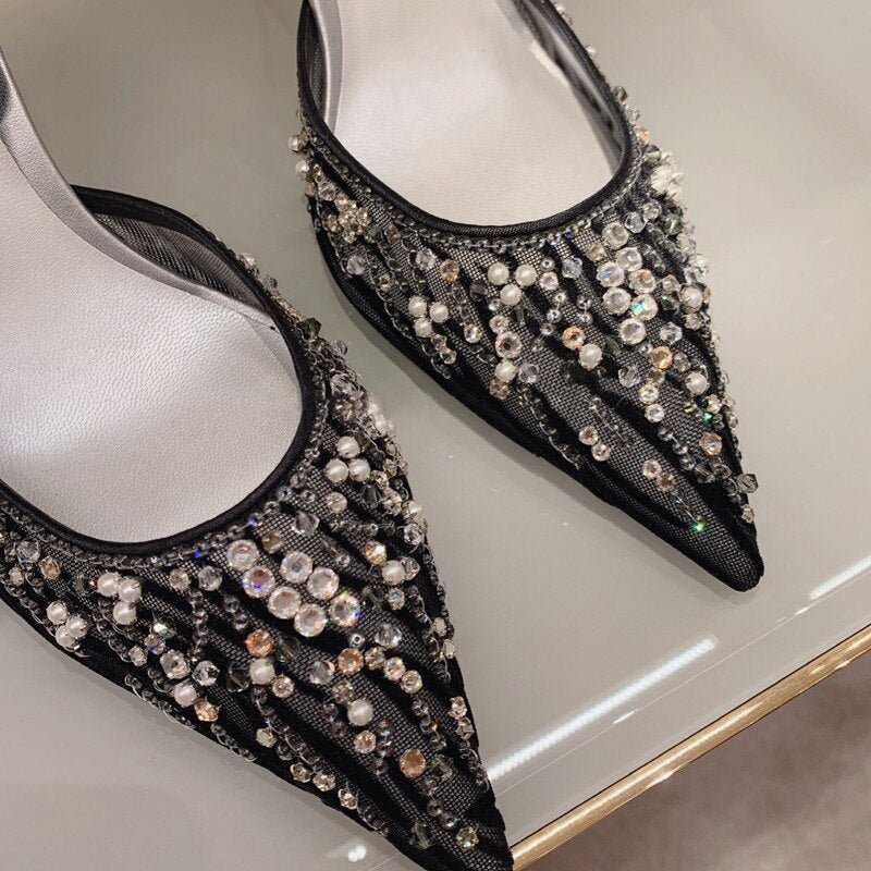 High-heeled stilettos pointed bridal wedding rhinestone sandals
